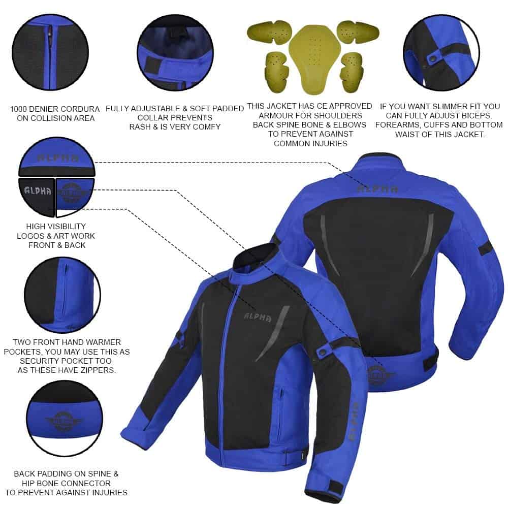 PRESENTAMOS ALPHA CYCLE GEAR (DESDE 1992) EN EE. UU., AÑOS DE EXPERIENCIA DE MOTOCICLISTAS QUE OFRECEN EQUIPOS DE ALTA CALIDAD CON PRECIOS EXCEPCIONALES. RESPALDAMOS NUESTRA CALIDAD Y OFRECEMOS GARANTÍA DE POR VIDA EN TODOS NUESTROS PRODUCTOS ALPHA CYCLE GEAR. CARACTERÍSTICAS: CHAQUETA DE MOTOCICLETA CON GARANTÍA DE POR VIDA, 5 PROTECCIONES ACOLCHADAS CE (2 HOMBROS, 2 CODOS, 1 ESPALDA, EXTRAÍBLES), AJUSTABLE EN 10 PUNTOS PARA UN AJUSTE PERSONALIZADO. EXTERIOR DE MALLA PARA LA MEJOR CIRCULACIÓN DE AIRE DELANTERA/ TRASERA EN ESTA CHAQUETA DE MOTOCICLISTA DE HOMBRE. SISTEMA DE FLUJO DE AIRE, SIN MÁS MALOS OLORES DE AXILAS EN CHAQUETA DE HOMBRE PARA MOTOCROSS. LOGOS DE ALTA VISIBILIDAD REFLEJADOS DELANTERA, TRASERA Y EN LOS BRAZOS EN CHAQUETA DE OFF-ROAD. CUELLO DE ESPUMA CON MEMORIA PARA COMODIDAD EN ESTAS CHAQUETAS DE MOTO DE HOMBRE. CHAQUETA DE MALLA ALPHA CON SEMI PROTECCIÓN, 2 CAPAS DE ACOLCHADO DE ESPUMA EN LA PARTE POSTERIOR INFERIOR. CHAQUETA DEPORTIVA ALPHA TIENE CONSTRUCCIÓN EXTERIOR DE TELA CORDURA 1000 D EN ÁREAS DE COLISIÓN, 600 D EN ÁREAS REGULARES. ESTA CHAQUETA DE MOTOCICLETA DEPORTIVA TIENE CREMALLERA PARA CONECTAR PANTALONES DE MOTO, COMPATIBLE CON TODOS LOS PANTALONES DE MOTO. INCREÍBLEMENTE, ESTA CHAQUETA DE MOTOCICLETA PARA HOMBRE CON PROTECCIÓN VIENE CON BOLSILLO OCULTO PARA TELÉFONO, BOLSILLO PARA LLEVAR OCULTO, BOLSILLO PARA CALENTAR LAS MANOS EN CHAQUETA MOTOCICLETA DE HOMBRE CON CREMALLERAS YKK, GARANTÍA DE POR VIDA EN CHAQUETA TOURING. NUESTRA PROMESA, ESTA ES LA MEJOR OFERTA EN EL MERCADO DE CHAQUETAS DE MOTOCICLETA DE PROTECCIÓN. COBRAMOS UN PRECIO JUSTO POR LOS ACCESORIOS DE MOTOCICLETA ALPHA Y LA ROPA DE PROTECCIÓN DE MOTOCICLETA.