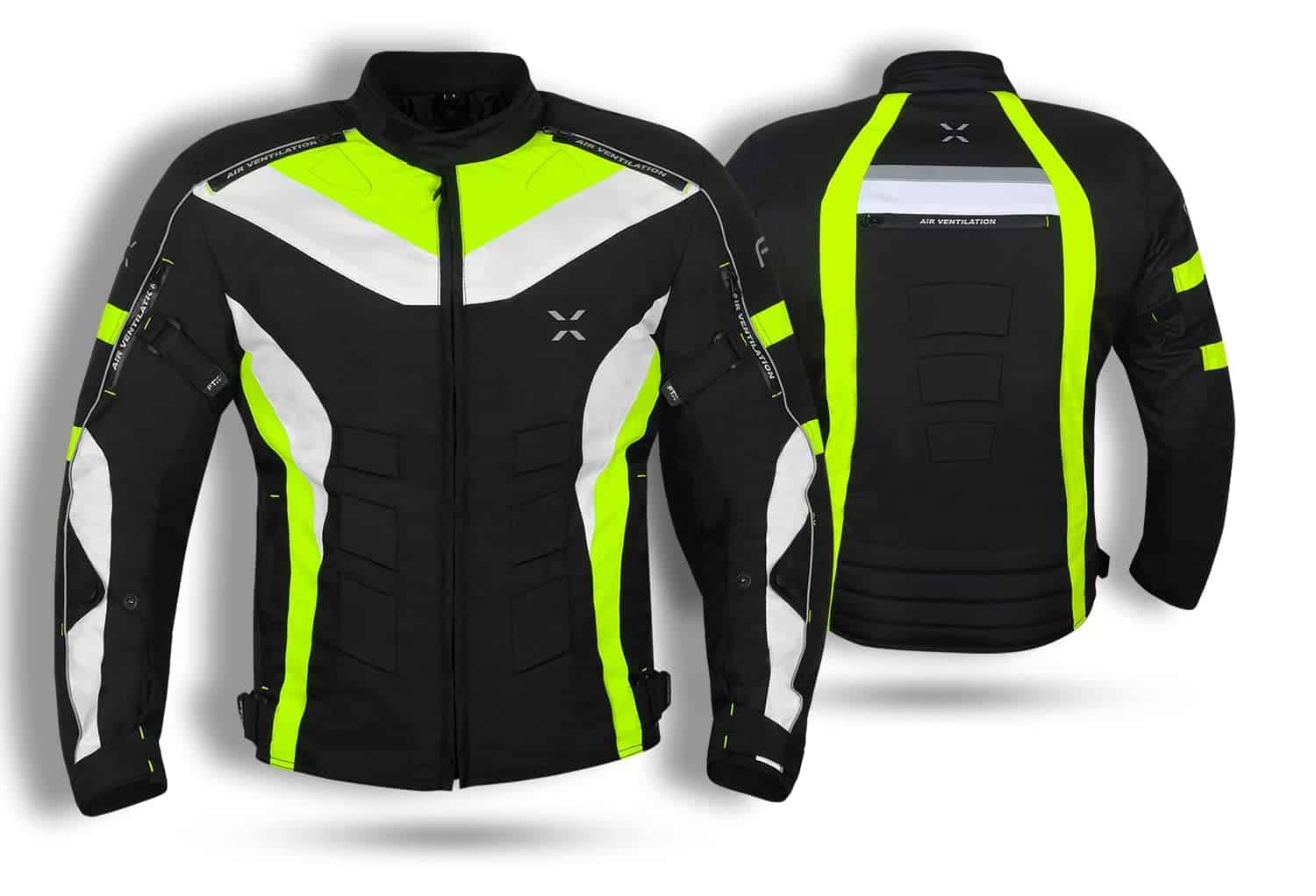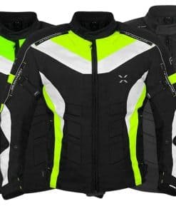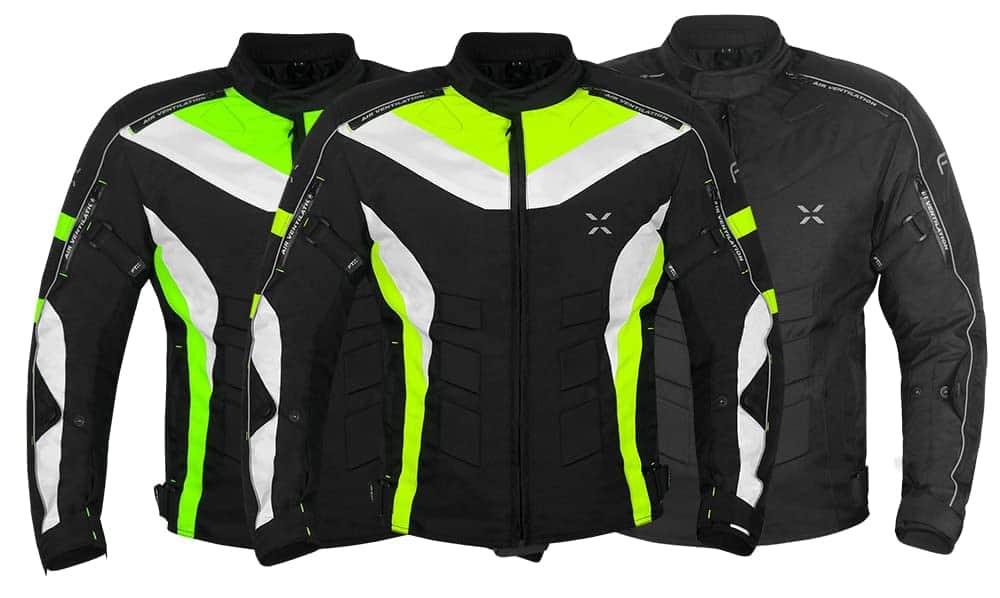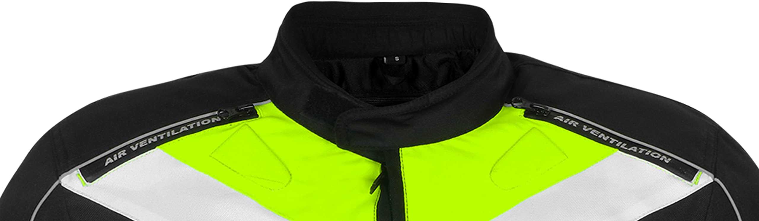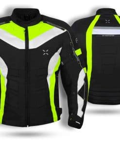 Presentamos la mejor chaqueta de material Cardura 600D de alta calidad, impermeable, resistente al viento y con forro impermeable. Ecológica, duradera, cómoda y suave. Disponible en colores negro, negro y amarillo, y negro y verde. Tallas disponibles: XS para pecho 46, S para pecho 48″, M para pecho 52″, L para pecho 56″, XL para pecho 60″, 2XL para pecho 64″, 3XL para pecho 68″ y 4XL para pecho 72″. Sistema de ventilación delantero y trasero. Insertos de compuesto inyectado para máxima transpirabilidad y flujo de aire. Cremalleras de ventilación de aire para verano. Costuras dobles y capas múltiples. Franjas reflectantes impresas en frente, espalda y mangas.