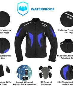 La chaqueta de moto de tela DALLX está hecha de tela de alta calidad y resistente de Cordura 600D para hombres, que protege contra abrasiones, cortes y efectos a lo largo del paseo. Cuando estás conduciendo una moto, siempre es importante asegurarte de que estás usando los accesorios necesarios y adecuados. Esta chaqueta de motocicleta con armadura es uno de los equipos de seguridad importantes para motociclistas. Nuestras chaquetas de motocicleta son perfectas para todo tipo de condiciones climáticas. Características: Hecha de la chaqueta de motocicleta de Cordura 600D de alta calidad. La membrana Reissa tiene chaquetas de motocross impermeables al 100%. Armadura C.E. aprobada en hombros, codos para protección. Bolsillos internos y externos para mejorar el almacenamiento de chaquetas de motociclistas y su valor de almacenamiento. El sistema de ventilación delantero y trasero hace que la chaqueta todoterreno sea transpirable y libre de sudor. Paneles elásticos en los codos de la chaqueta de moto de aventura permiten la flexibilidad de los brazos. Doble costura de alta calidad en la chaqueta de motociclista. Forro suave en muñecas y cuellos para proporcionar una experiencia de conducción en motocicleta adecuada. Botones de plástico resistentes a la corrosión para mejorar la resistencia de la chaqueta. Chaquetas de motorista de alta calidad con un precio asequible. Haz clic en Añadir al carrito y ¡obtén la Chaleco de Cuero DALLX con Ajuste Lateral ajustable hoy mismo!