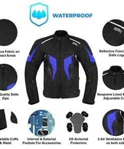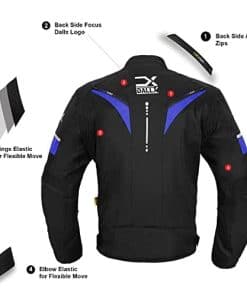 Características: Hecho de chaqueta de moto de calidad Cordura 600D. Membrana Reissa tiene chaquetas de moto de motocross 100% impermeables. Armadura aprobada por C.E. en hombros, codos para protección. Bolsillos externos e internos para mejorar el almacenamiento y el valor de guardar chaquetas para motoristas. El sistema de ventilación para la parte delantera y trasera hace que la chaqueta off-road sea transpirable y libre de sudor. Paneles elásticos en los codos de la chaqueta de moto de aventura permiten la flexibilidad de los brazos. Doble costura de alta calidad en la chaqueta de moto. Forro suave en muñecas y cuellos para proporcionar una experiencia de conducción en moto adecuada. Botones de plástico libres de óxido para mejorar la resistencia de la chaqueta. Chaquetas para motociclistas de alta calidad a un precio asequible.