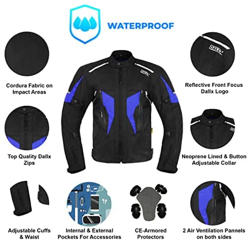 La chaqueta de moto de tela DALLX está hecha de tela Cordura 600D de calidad y resistente, que protege contra abrasiones, cortes y efectos durante el viaje. Cuando conduces una moto, siempre es importante asegurarte de que estás usando los accesorios necesarios y adecuados. Esta chaqueta de moto con armadura es uno de los equipos de seguridad importantes para los motoristas. Nuestras chaquetas para motociclistas son perfectas para todo tipo de condiciones climáticas.