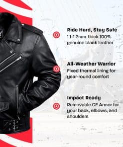 Chaqueta de Moto de Cuero HWK Brando para Hombres, Chaqueta