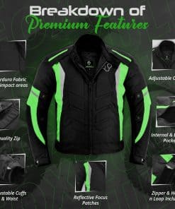 3. Diseño funcional y elegante: La chaqueta de motocicleta con múltiples bolsillos seguros, incluido un bolsillo interno para elementos esenciales, y una silueta clásica, nuestra chaqueta combina practicidad con una estética atemporal. Los detalles reflectantes mejoran la visibilidad para añadir seguridad.