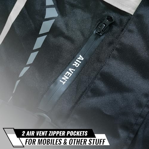 Chaqueta de moto con tejido exterior de poliéster Cordura 600D con relleno de armadura protectora CE removible en la espalda, codos y hombros para una protección adicional. Sistema avanzado de ventilación: mantente fresco y cómodo con orificios estratégicamente ubicados que mejoran el flujo de aire. Este diseño innovador ayuda a regular tu temperatura, haciéndolo ideal para diversas condiciones climáticas. Visibilidad mejorada: tu seguridad en la carretera es crucial, por lo que nuestra chaqueta de moto incorpora paneles y detalles reflectantes. Estos elementos reflectantes aumentan tu visibilidad ante otros conductores, especialmente en situaciones de baja luz o conducción nocturna. Armadura aprobada por CE para una seguridad mejorada: equipada con protectores de hombros y codos aprobados por CE removibles, nuestra chaqueta de motorista elegante garantiza una protección superior contra impactos. El bolsillo opcional para protector de espalda brinda una seguridad adicional para un viaje seguro y confiado.
