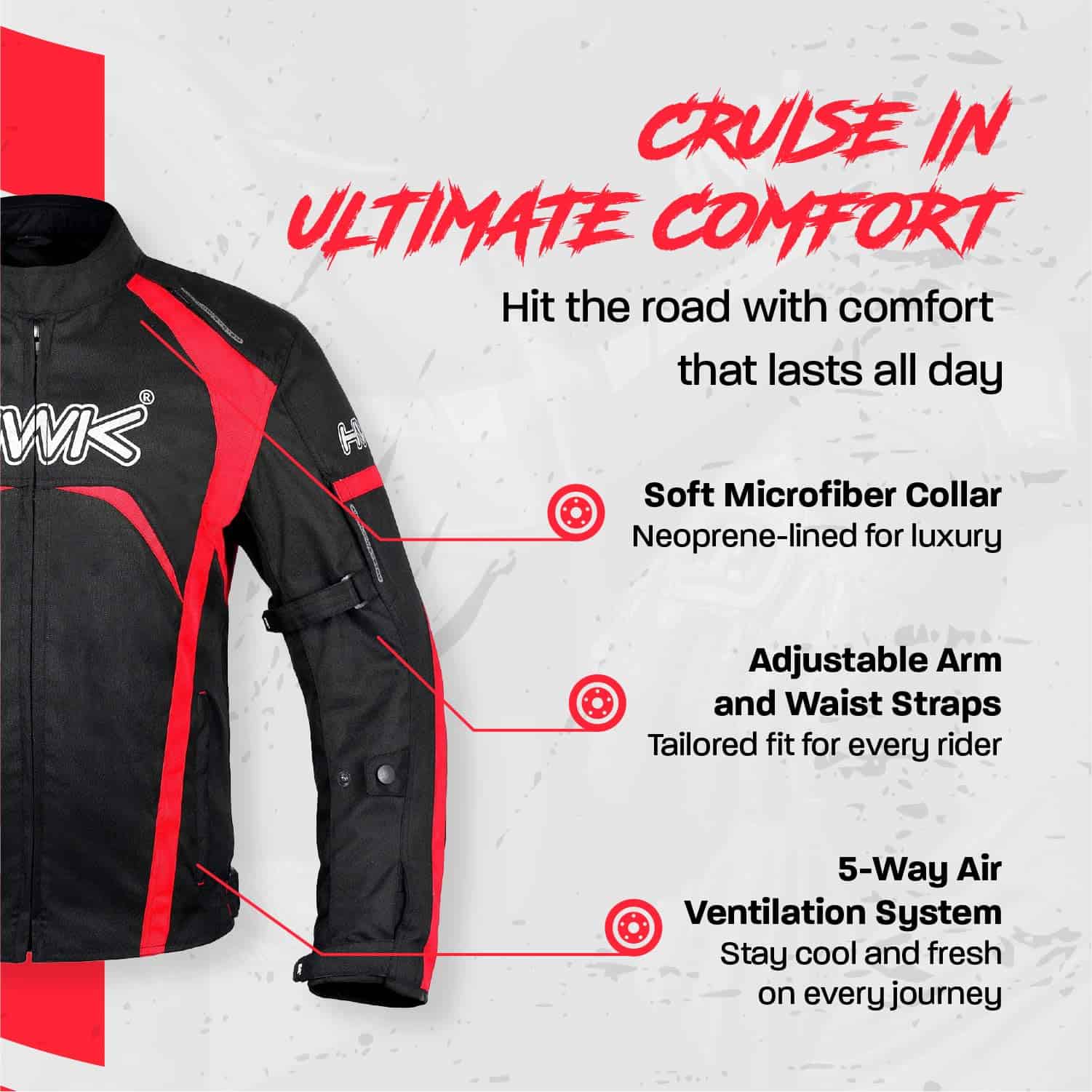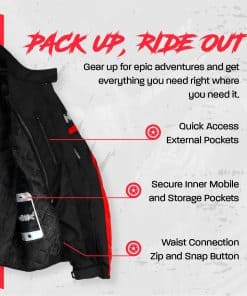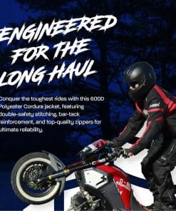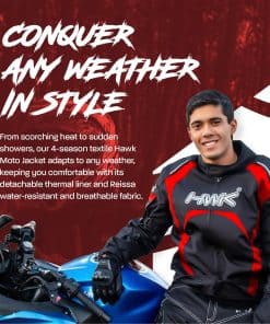 Conquista cualquier camino con estilo con la Chaqueta de Moto HWK, la chaqueta de moto impermeable definitiva. Construida para una protección incomparable en cualquier clima, nuestra chaqueta de carreras fabricada con resistente Poliéster 600D Cordura es una de las chaquetas de moto más duraderas para hombres. Diseñada para los audaces, nuestra chaqueta protectora de moto está equipada con armadura CE para una protección contra impactos definitiva y una membrana resistente al agua para combatir cualquier condición climática. El forro térmico desmontable la hace perfecta para el invierno mientras que su sistema de ventilación de aire te mantiene fresco en verano. Los logotipos de alta visibilidad y un diseño completamente reflectante hacen de esta una chaqueta de alta visibilidad para paseos de día o de noche. Los brazos y la cintura ajustables, múltiples bolsillos, construcción resistente con costuras dobles de seguridad y cremalleras YKK de alta calidad hacen de esta la chaqueta de moto perfecta para aventuras enduro y de doble deporte. Eleva tu experiencia de conducción con la Chaqueta de Moto HWK para Mujeres y Hombres, el equipo de moto esencial para cada maverick de la motocicleta.