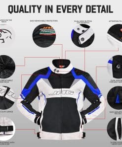 Descubre un confort, protección y estilo inigualable con la CHAQUETA DE MOTO JAG. Diseñada para hombres y mujeres, esta chaqueta reflectante todo temporada es perfecta para cualquier entusiasta de las motos. Hecha de tela de Cordura de alta calidad, soporta los rigores de la conducción de motos, asegurando un rendimiento duradero. La chaqueta cuenta con armadura aprobada por CE en los puntos de impacto clave (hombros, codos y espalda) para una protección y seguridad mejoradas. Con paneles de malla transpirable, la chaqueta garantiza un flujo de aire óptimo, manteniéndote fresco y cómodo durante los paseos en clima cálido. Las tiras reflectantes de alta visibilidad aseguran que te mantengas visible y seguro durante los paseos nocturnos o en condiciones de poca luz. Varios puntos de ajuste en la cintura, puños y brazos te permiten lograr un ajuste a medida que mejora la comodidad y la movilidad. La chaqueta también ofrece un amplio almacenamiento con bolsillos internos y externos para mantener tus elementos esenciales seguros y al alcance. Su diseño moderno y elegante se ve genial sobre la moto y fuera de ella, y está disponible en una gama de tallas para adaptarse a todos los motociclistas. Ideal para combinar con otros accesorios de moto, la CHAQUETA DE MOTO JAG está diseñada específicamente para hombres pero también está disponible en tallas y estilos que satisfacen a mujeres. Esta chaqueta de moto complementa tu equipo de moto existente, asegurando que tengas la mejor protección y estilo en la carretera. Se puede usar sobre chalecos de moto para mayor protección y estilo, convirtiéndola en una chaqueta de moto de verano ideal y una chaqueta de moto para clima caluroso. Ofreciendo una opción elegante y protectora para mujeres, es una adición clave a la colección de accesorios de moto de cualquier hombre y el equipo esencial para hombres que se toman en serio su conducción. En JAG, entendemos las necesidades de los motociclistas. La CHAQUETA DE MOTO JAG está diseñada para ofrecer la combinación perfecta de protección, comodidad y estilo. Conduce con confianza sabiendo que estás protegido por lo mejor en equipo de moto. Ya seas un motociclista experimentado o recién comenzando, la CHAQUETA DE MOTO JAG es tu compañero de conducción perfecto. Mejora tu experiencia de conducción con la CHAQUETA DE MOTO JAG. ¡Ordene la suya hoy y salga a la carretera con confianza y estilo!