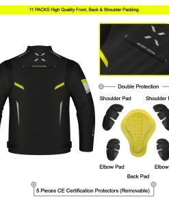 3. Tejido transpirable: La ventilación de aire es clave para una presencia maximizada en la carretera. Nuestros espacios de ventilación en ambos lados de las chaquetas de moto para hombres aseguran que tu cuerpo no se pudra en la humedad aumentada y el sudor.