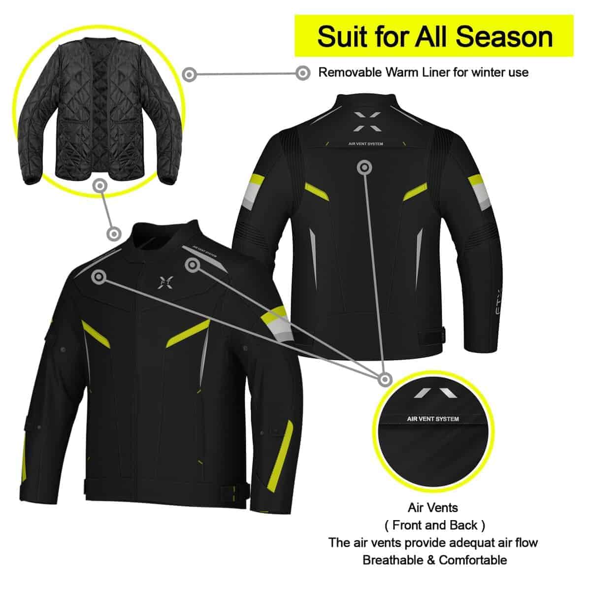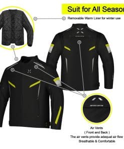 1. Un equipo para todas las estaciones: No importa a dónde te lleve el mapa, en pantanos o desiertos, en monzones o sequías, la chaqueta de motocicleta FTX para hombres es tu compañero más sincero en el camino. Chaqueta de motocicleta forrada con un acolchado reforzado extra denso y un forro térmico removible, la chaqueta de motocicleta FTX está completamente preparada para todo tipo de estaciones.