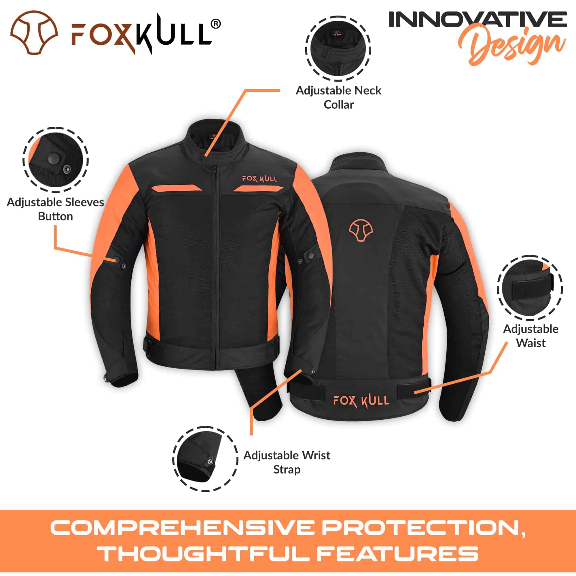 3. Ajuste Personalizable para Mayor Comodidad: Con correas ajustables en la cintura y puños, nuestra chaqueta de motocicleta ofrece un ajuste a medida para todo tipo de cuerpo. El forro de malla suave y transpirable mejora la comodidad y permite la superposición, perfecto para todas las condiciones de conducción.