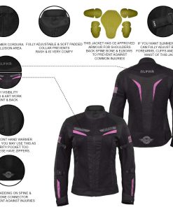 10 AÑOS DE GARANTÍA CHAQUETA DE MOTOCICLETA PARA MUJERES CON 5 ARMADURAS CE APROBADAS 2 EN HOMBROS, 2 EN CODOS, 1 EN LA ESPALDA CHAQUETA DE MOTOCICLISTA DESMONTABLE PARA MUJERES. CHAQUETA PARA TODO EL AÑO CHAQUETA DE MOTOCICLETA PARA MUJERES. TOTALMENTE AJUSTABLE EN 10 PUNTOS. CONSIGUE ESE AJUSTE A MEDIDA, MUJERES. EXTERIOR DE MALLA Y CORDURA PARA FLUJO DE AIRE MÁXIMO CHAQUETA DE MONTAR EN MOTOCICLETA. LOGOS DE REFLEXIÓN DE ALTA VISIBILIDAD EN LA PARTE DELANTERA, TRASERA Y BRAZOS CHAQUETA DEPORTIVA DUAL PARA MUJERES. CUELLO DE ESPUMA DE MEMORIA PARA CONFORT CHAQUETA DE MOTO DIRT PARA MUJERES. PROTECCIÓN ADICIONAL CON 2 CAPAS DE ESPUMA ACOLCHADA EN LA ESPALDA CHAQUETA DE TOURING PARA MUJERES CHAQUETA DE MOTOCICLETA CON CREMALLERA DE CONEXIÓN PARA PANTALONES MOTOCICLETA PARA MUJERES. BOLSILLO PARA TELÉFONO CHAQUETA DEPORTIVA PARA MUJERES. BOLSILLO PARA PORTAR ARMAS OCULTAS CHAQUETA DE MOTO PARA MUJERES. BOLSILLO CALENTADOR DE MANOS CON CHAQUETA DE MOTOCICLETA ROSA PARA MUJERES. CREMALLERAS YKK CHAQUETA DE MOTOCICLETA CON ARMADURA.