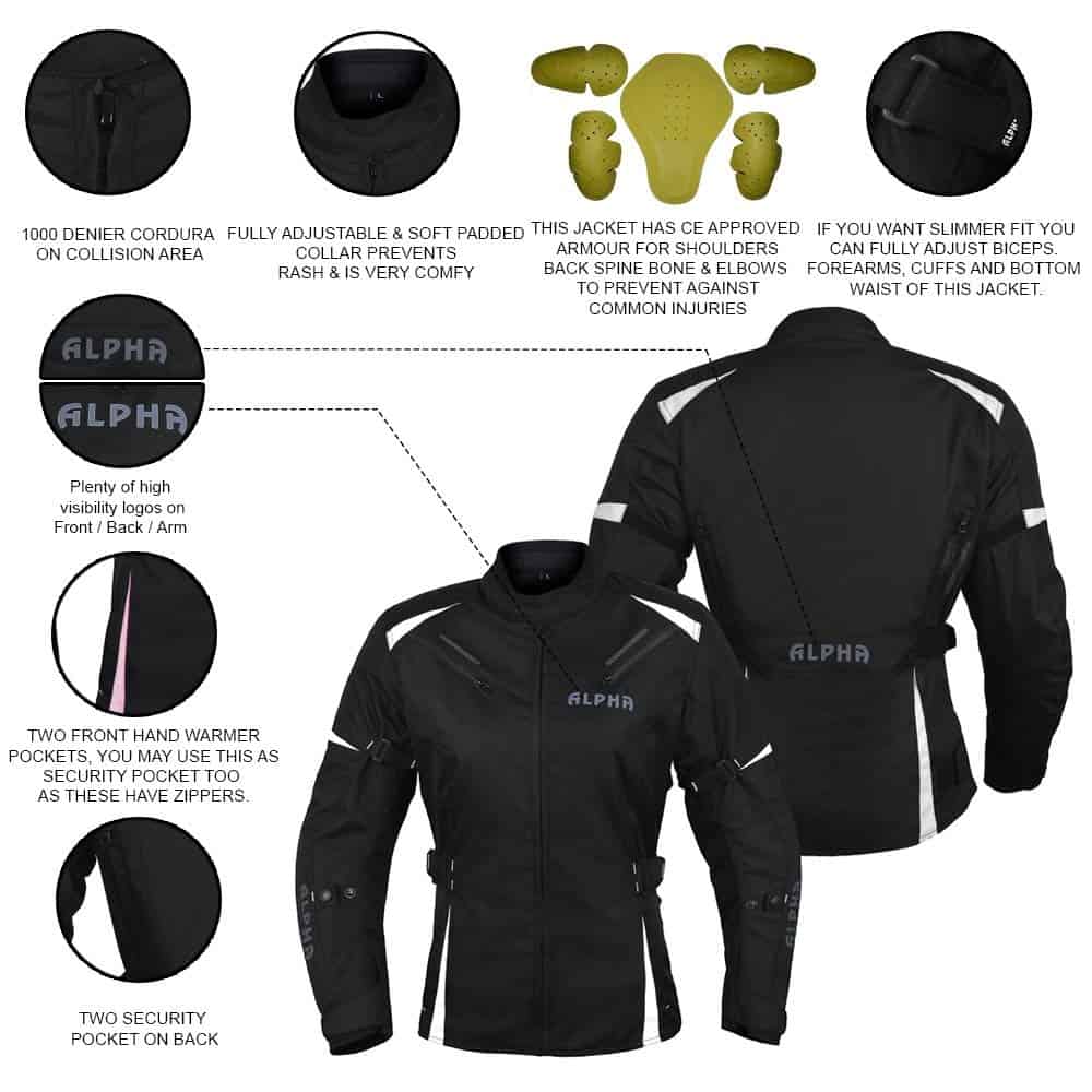 3 AÑOS DE GARANTÍA. 5 PROTECCIONES DE ARMADURA CE 2 HOMBROS, 2 CODO, 1 ESPALDA – DESMONTABLES. CHAQUETA IMPERMEABLE TODA TEMPORADA. TOTALMENTE AJUSTABLE EN 10 PUNTOS. OBTÉN ESE AJUSTE PERSONALIZADO QUE DESEAS FÁCILMENTE. CHAQUETA INTERIOR TÉRMICA DESMONTABLE. SISTEMA DE FLUJO DE AIRE, 2 FRONTAL, 3 POSTERIOR. NO MÁS OLORES EN LAS AXILAS. LOGOS REFLECTANTES DE ALTA VISIBILIDAD EN FRENTE, ATRÁS Y BRAZOS. CUELLO DE ESPUMA DE MEMORIA PARA COMODIDAD. SEMI PROTECCIÓN CON 2 CAPAS DE ACOLCHADO DE ESPUMA EN LA ESPALDA. CONSTRUCCIÓN EXTERNA DE TELA DE CORDURA 1000 D. CREMALLERA DE CONEXIÓN PARA PANTALONES DE MOTOCICLETA. BOLSILLO PARA TELÉFONO, BOLSILLO PARA OCULTAR PORTA, BOLSILLO CALENTADOR DE MANOS CIERRES YKK.