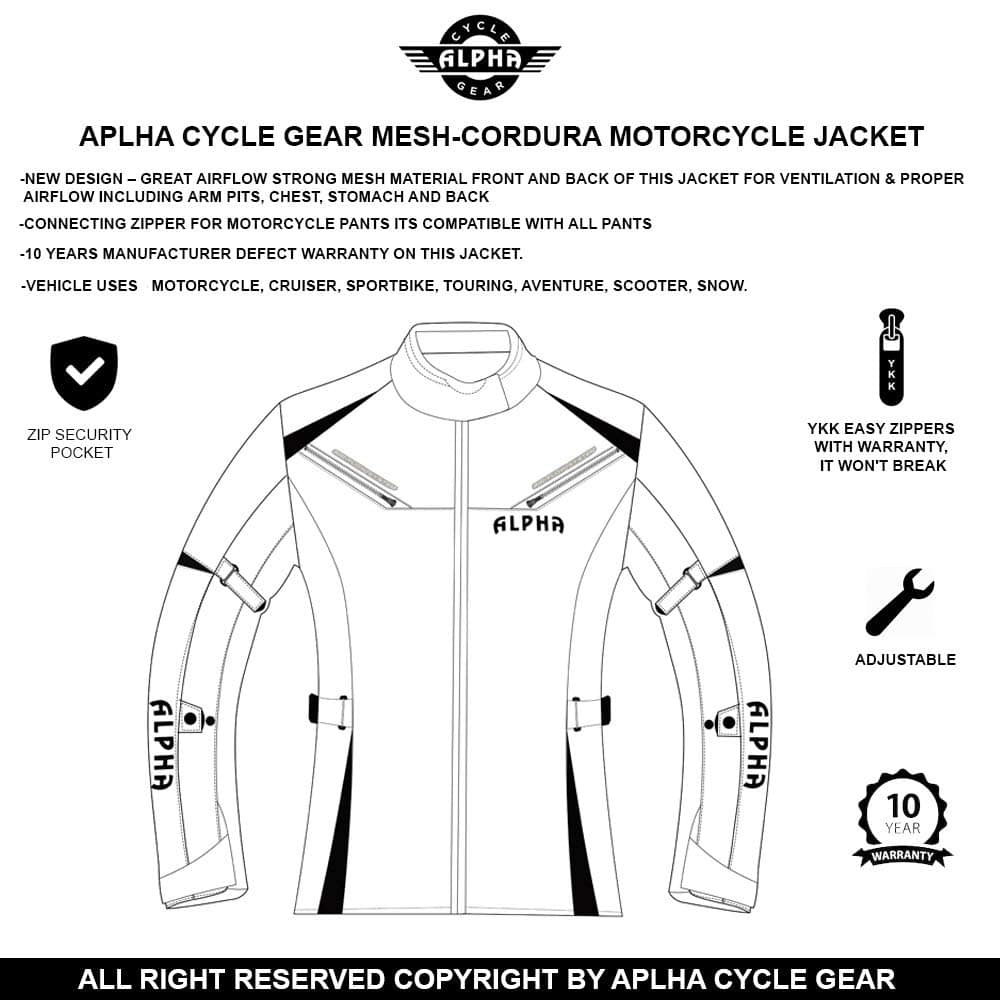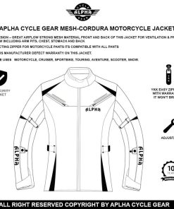 – GARANTÍA DE 3 AÑOS. 5 ARMADURAS CE APROBADAS (2 HOMBROS, 2 CODOS, 1 ESPALDA) EXTRAÍBLES. CHAQUETA IMPERMEABLE TODA TEMPORADA. TOTALMENTE AJUSTABLE EN 10 PUNTOS PARA UN AJUSTE PERSONALIZADO. FORRO TÉRMICO EXTRAÍBLE. SISTEMA DE FLUJO DE AIRE CON 2 FRONTALES Y 3 TRASEROS. LOGOS REFLEJANTES DE ALTA VISIBILIDAD EN FRENTE, ESPALDA Y BRAZOS. CUELLO DE ESPUMA CON MEMORIA PARA MAYOR COMODIDAD. PROTECCIÓN SEMI-PROFESIONAL CON 2 CAPAS DE ACOLCHADO DE ESPUMA EN LA PARTE TRASERA. FABRICACIÓN EXTERNA DE TEJIDO DE CORDURA 1000D. CREMALLERA DE CONEXIÓN PARA PANTALONES DE MOTOCICLETA. BOLSILLO PARA CELULAR, BOLSILLO PARA PORTAR OCULTO, BOLSILLO CALENTADOR DE MANOS Y CIERRES YKK.