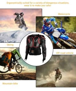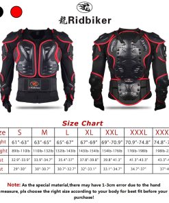 Si suele conducir una motocicleta durante mucho tiempo, debe elegir este tipo de armadura protectora para protegerse eficazmente cuando conduzca. La armadura protectora está hecha de nailon resistente al desgaste de alta densidad. El forro móvil permite una limpieza fácil, múltiples respiraderos grandes de concha de plástico fabricados en polipropileno de alta resistencia, con espuma, pueden resistir el impacto máximo, cinturón ajustable y correas elásticas de velcro, todas las ventajas lo mantienen seguro durante la conducción. Puede ser utilizado para motocicletas, bicicletas, esquí y patinaje, entre otros deportes al aire libre. Especificación: Marca: Ridbike Tipo: armadura de cuerpo completo Tipo de deporte: motocicleta, bicicletas, esquí, patinaje y otros deportes al aire libre. Color: negro/rojo Material: PP de alta calidad + nailon + espuma Género: Unisex Peso: 2.67 libras Guía de tallas: S Altura (61″~63″) / Peso(89~110 lb) M Altura (63″~65″) / Peso(110~121 lb) L Altura (65″~67″) / Peso(121~143 lb) XL Altura (67″~70″) / Peso(143~165 lb) XXL Altura (70″~71″) / Peso(165~187 lb) XXXL Altura (71″~73″) / Peso(187~209 lb) SOLO LIMPIEZA EN SECO. Incluye: 1 armadura de cuerpo completo