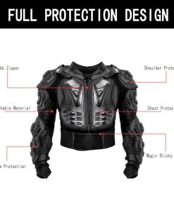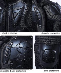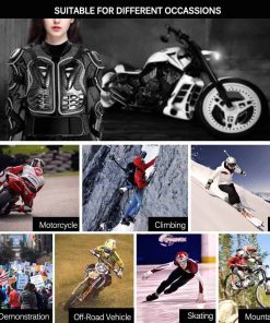 Chaqueta protectora de motocicleta para todo el cuerpo: Protección contra impactos 360º con placas de PE de 0.6 pulgadas y acolchado de EVA absorbente de impactos en zonas críticas. Diseñada para mantenerse fresco con paneles de malla y forro que absorbe el sudor. Ajuste personalizado con cintura de velcro ajustable, protectores desmontables y correas de hombro ajustables. Ligera y versátil para diferentes deportes y actividades que requieren protección adicional. Incluye comentarios de usuarios reales y recomendaciones de uso.