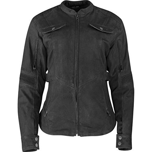 La chaqueta de motocicleta para mujeres Fast Times de Speed and Strength está construida con un resistente caparazón exterior de lona encerada lavada con enzimas y estiramiento en dos direcciones. Para una mayor protección, la chaqueta viene equipada con protecciones desmontables Vault C.E. aprobadas en los hombros, codos y columna vertebral. Diseñada como un ajuste moderno que se mueve contigo, el FAST TIMES incorpora una forma cónica de hombro a cintura y un dobladillo curvado con cola caída en la parte trasera. Los fuelles de cadera ayudan a relajar el ajuste al sentarse y los paneles elásticos en las mangas aumentan el rango de movimiento. El diseño a medida está cortado para adaptarse a medida que aumenta el tamaño, lo que permite un mejor ajuste en múltiples tallas y tipos de cuerpo.