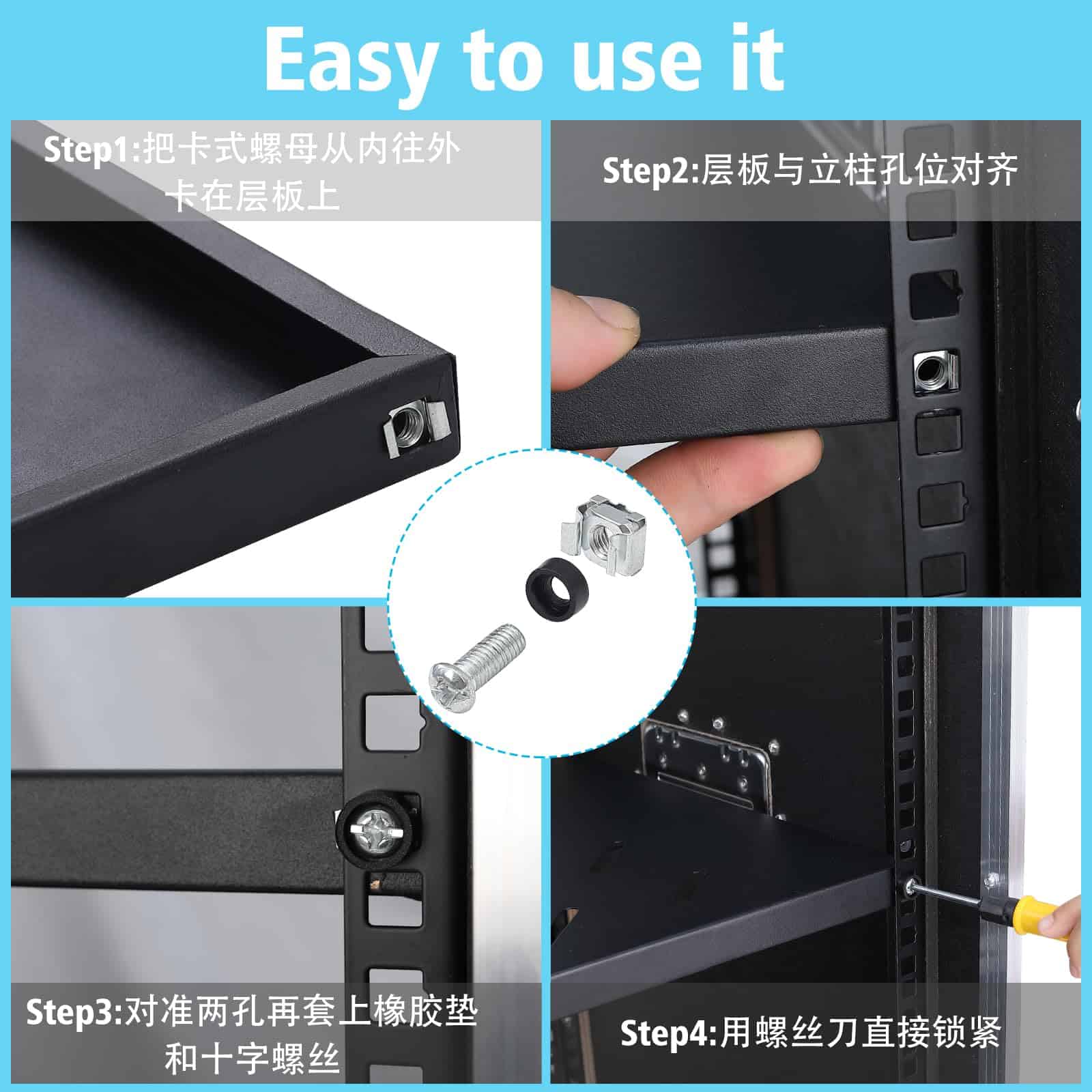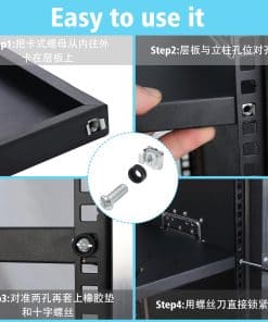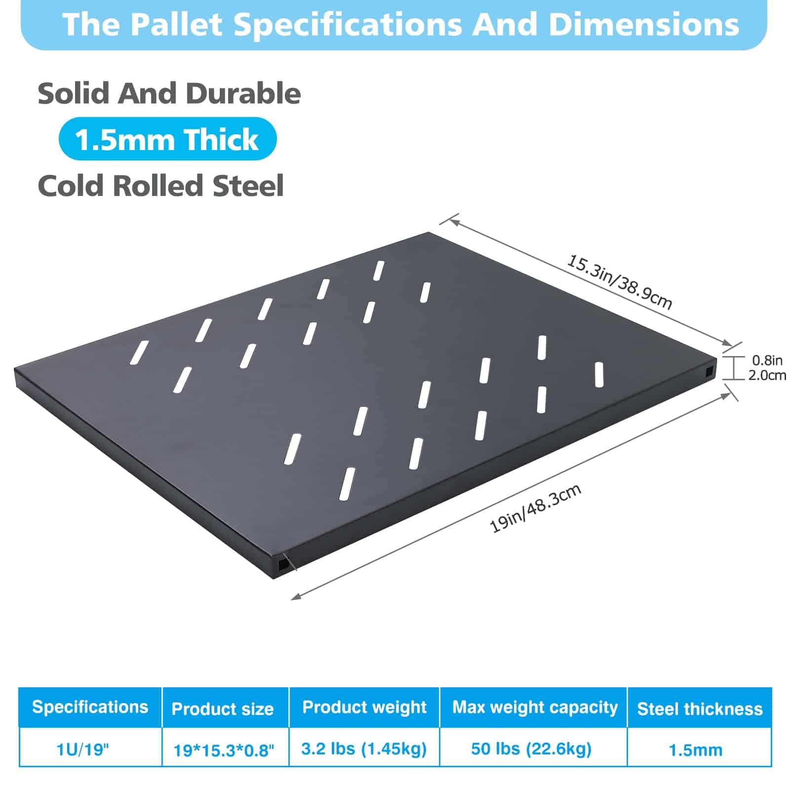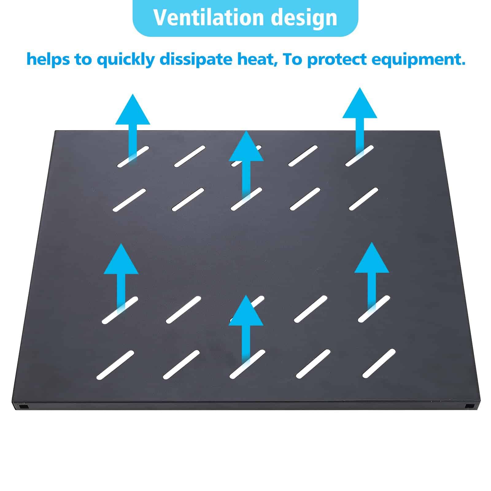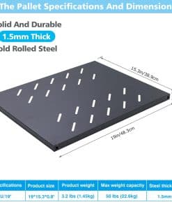 Hecho de acero laminado en frío, gran capacidad de carga y capacidad máxima de carga de aproximadamente 55 lb / 25 kg. Está diseñado con orificios de ventilación, que pueden ser útiles para ventilar y disipar el calor de los equipos.