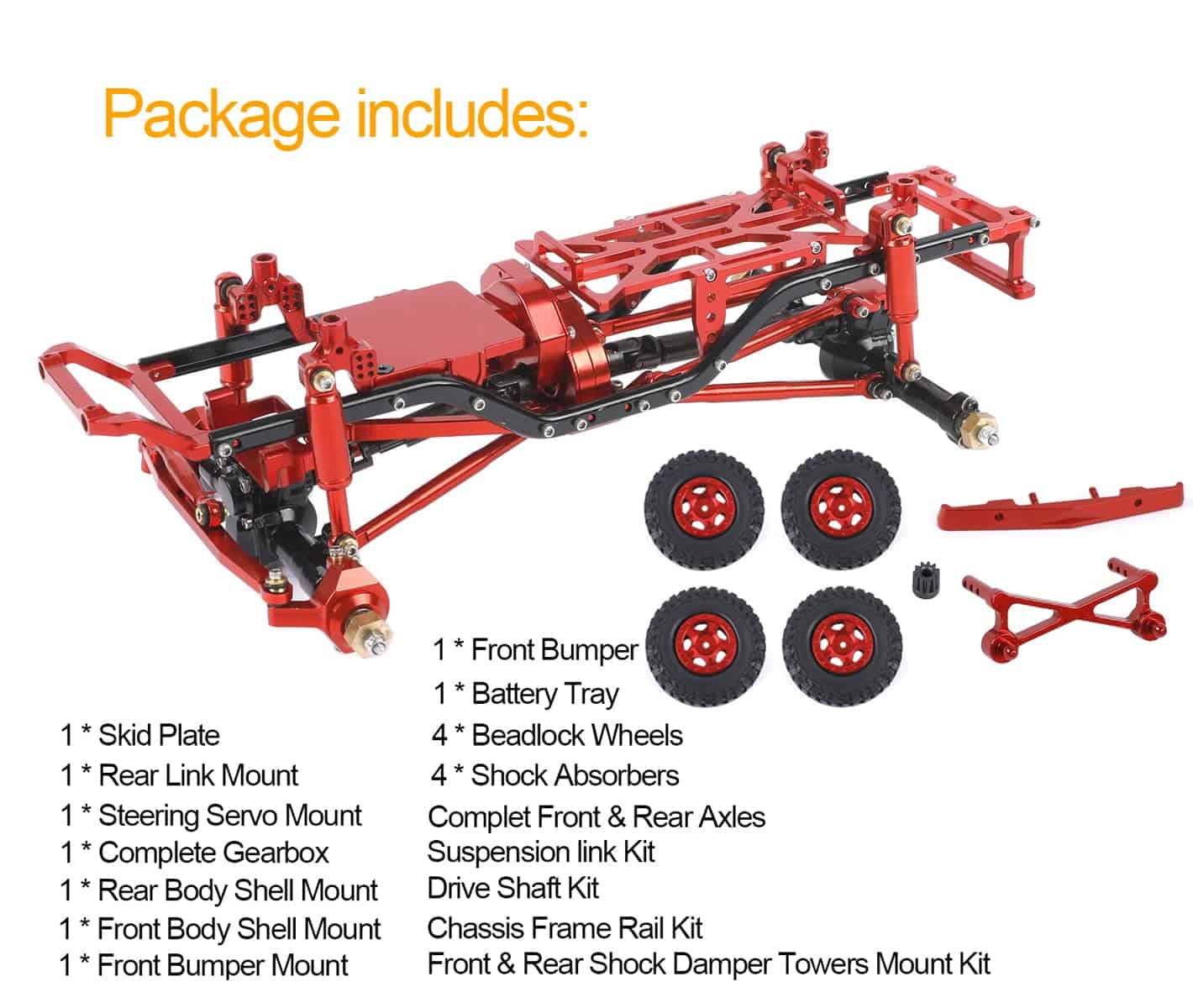 2. Incluido en el Paquete: Chasis de marco de aleación de aluminio de alta calidad 1/24 RC Car SCX24 C10 (Incluye todos los accesorios en la imagen).