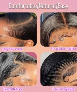 2. Característica del Frontal de Encaje HD: Frontal de Encaje Transparente HD de 13×4 de Oreja a Oreja Sin Costura, Pre Arrancado con Pelo de Bebé Alrededor, Pequeños Nudos Blanchados, Se Mezcla Bien con Tu Línea de Cabello Natural.