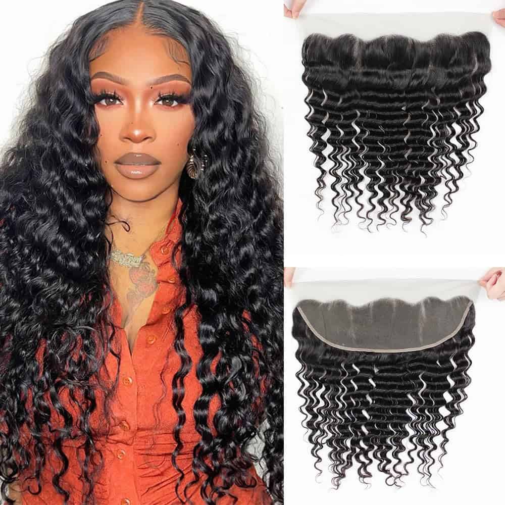 1. Material del Frontal de Encaje de Cabello Humano: 100% Virgen Brasileño no Procesado Cabello Humano, Cierre de Onda Profunda, Suave, Suave, Esponjoso, Completo, Brillante, Sin Químicos, Sin Olor, Sin Caída, Sin Enredos.