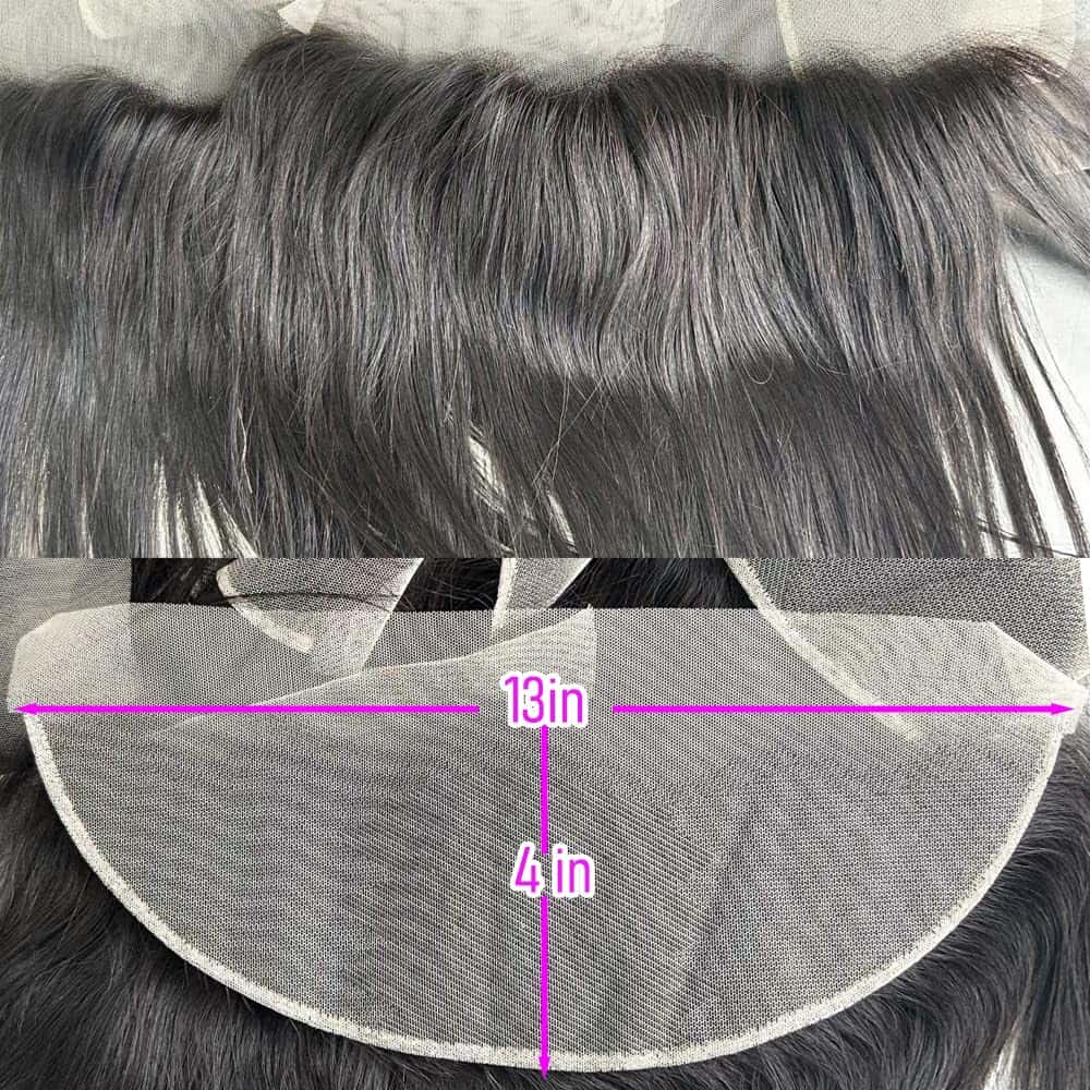4. Detalles del Frontal de Cabello Humano: Cabello Humano Natural Negro 1B, Frontal de Encaje de 13×4, Frontal de Encaje HD, 35-70 Gramos Cada Pieza, Peso Completo, Disponible de 12-20 Pulgadas, Verdadero a la Longitud, Grueso en las Puntas.