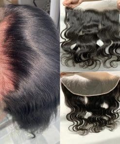 4. Detalles del Cierre Frontal de Cabello Humano: Cabello Humano Natural Negro 1B, Cierre Frontal de Encaje 13×4, Encaje Frontal HD, 35-70 Gramos Cada Pieza, Completo en Peso, Disponible en 12-20 Pulgadas, Verdadera Longitud, Grueso hasta las Puntas.