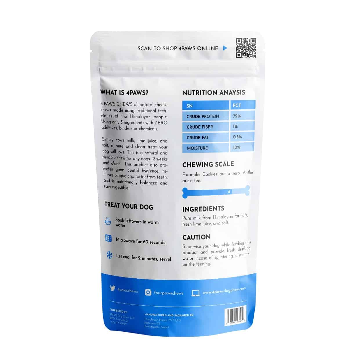 Nuestros chews para perros del Himalaya están elaborados con leche de yak rica en nutrientes para crear un premio resistente y duradero. A medida que tu perro mastica, la superficie texturizada ayuda a controlar el sarro y la placa, manteniendo los dientes limpios y las encías saludables. Hechos con solo tres ingredientes naturales y simples, estos saludables chews no contienen químicos, aditivos, lactosa ni gluten. Hemos elaborado cuidadosamente un chew premium y todo natural que saca a relucir el instinto de tu perro a masticar mientras apoya su salud de la nariz a la cola. Este chew sabroso y súper duro brinda horas de entretenimiento masticable para perros de todas las razas y tamaños. ¡Descubre un chew más seguro y más saludable que seguramente se convertirá en el nuevo premio favorito de tu perro!