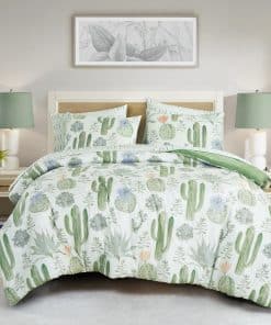 Lleva la tranquilidad de un Sereno Lodge a tu dormitorio con nuestro Set de Edredón. Este ambiente desértico elegantemente sereno presenta un calmante patrón de cactus y suculentas en suaves tonos verdes y pasteles, creando un oasis de paz en cualquier espacio. Perfecto para amantes de la naturaleza, este juego de edredones añade un toque de encanto botánico fresco a tu decoración. Mejorando aún más la sensación de lodge están sus coordinados colores atrevidos y vibrantes que se complementan entre sí. Edredón ligero pero cálido, proporcionando confort durante todo el año. Una pieza de ropa de cama decorativa ideal para decoraciones de temática occidental. Hecho con 100% microfibra, el edredón es resistente a la decoloración y a las arrugas. Mientras que las sábanas son de tela suave de microfibra para un tacto suave, manteniéndote cómodo toda la noche. Mejora tu experiencia de dormir y abraza el arte de la relajación con este impresionante e invitador juego de ropa de cama.