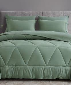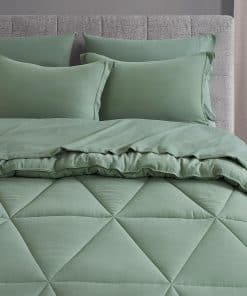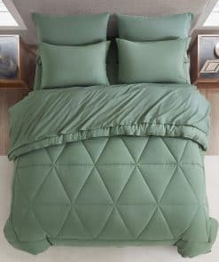 Transforma tu dormitorio de una manera sofisticada y lujosa con este acogedor juego de cama en una bolsa. Un atractivo diseño geométrico triangular acolchado con una presentación elegante pero simple que te hace sentir como en casa. Incluye fundas de almohada de color sólido, fundas de almohada, sábana encimera y sábana bajera para completar tu cama con un toque elegante. Un estilo contemporáneo moderno para refrescar tu habitación mientras brinda comodidad diaria de una manera elegante. Edredón ligero de alto loft con el calor adecuado para uso durante todo el año. El edredón está hecho de 100% poliéster de microfibra cepillada, lo que le da una sensación súper suave y acogedora. La tela está lavada con piedra, lo que crea un atractivo efecto de tela arrugada natural para realzar la estética del edredón. Las sábanas están lavadas con una tela de microfibra cepillada para una sensación suave, manteniéndote cómodo durante toda la noche. Este proceso crea sábanas más fuertes y duraderas que son resistentes a la decoloración y al encogimiento con un proceso de cuidado fácil. Desde lo simple hasta lo sofisticado, dale a tu dormitorio un toque agradable de elegancia sin sacrificar la comodidad.