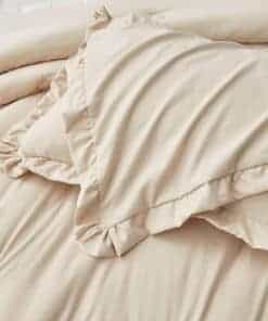 Transforma tu dormitorio de una manera sofisticada y lujosa con este acogedor juego de ropa de cama de edredón. El edredón, con su ribete fruncido añade un toque encantador de fantasía al diseño, haciendo que la apariencia sea sofisticada y acogedora. La tela ha sido lavada a la piedra, lo que le da una apariencia única y encantadoramente desgastada, creando una estética vintage que complementa sin esfuerzo diversos estilos de decoración. Brindando confort diario de manera elegante con un tacto suave y sedoso contra tu piel, haciéndolo un placer acurrucarse con él en noches más frías. El diseño ligero pero acogedor asegura un calor óptimo sin el peso, permitiéndote disfrutar de un sueño reparador durante todo el año. El material de microfibra resiste las arrugas, la decoloración y el encogimiento, asegurando que el edredón mantenga su apariencia prístina y su calidad excepcional durante años. Disponible en una gama de colores atemporales, nuestro Edredón de microfibra Nora lavado a la piedra con ribete fruncido es la adición perfecta para cualquier dormitorio que busque un toque de encanto vintage chic. Ya sea que estés decorando una suite principal, una habitación de invitados, o incluso una acogedora casa de campo, este edredón realza sin esfuerzo la estética general, creando un refugio acogedor y elegante para el descanso y la relajación. Experimenta la combinación perfecta de encanto vintage y funcionalidad moderna, y transforma tu dormitorio en un oasis de estilo vintage shabby chic.