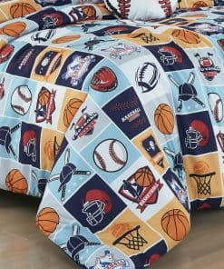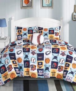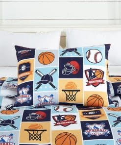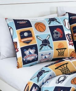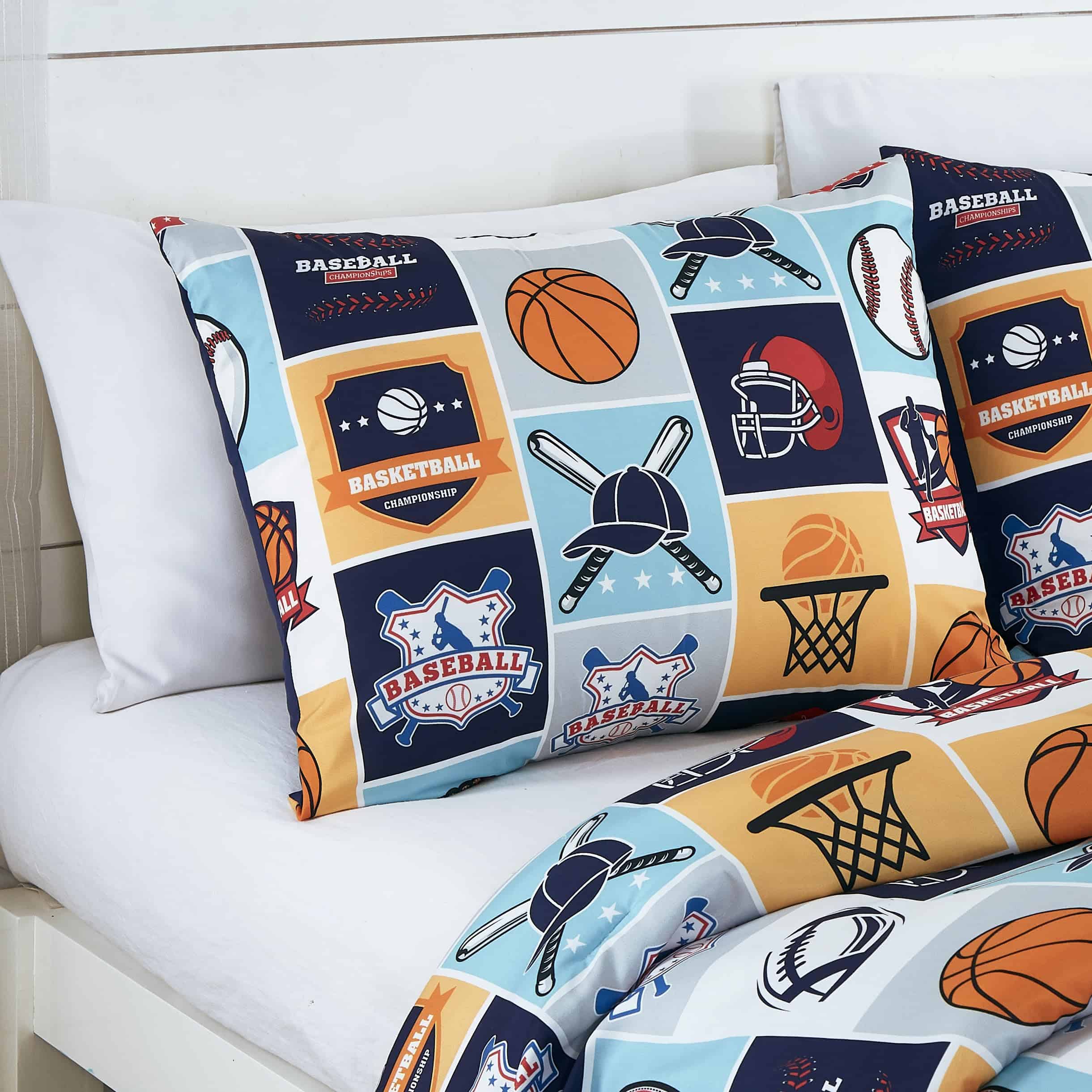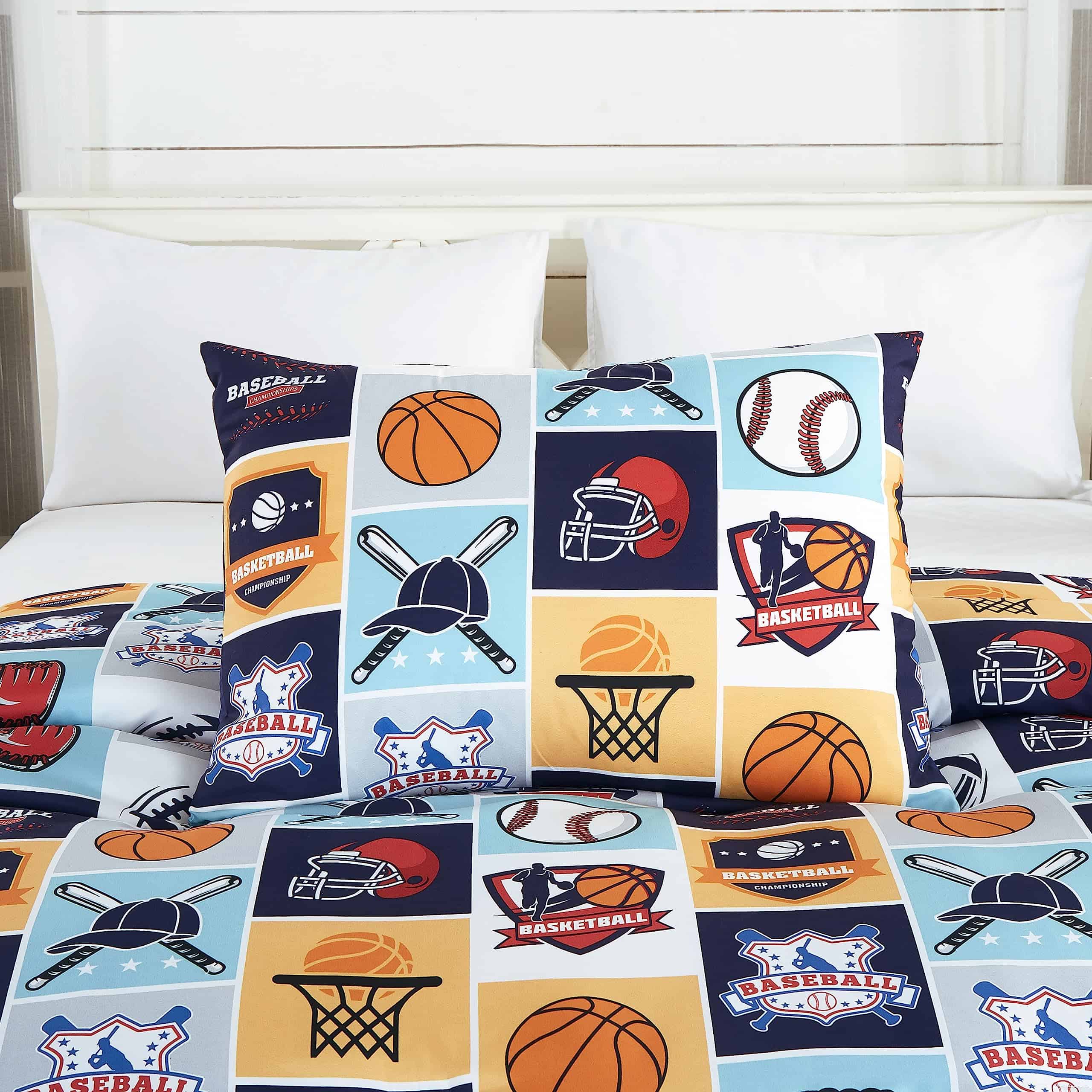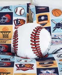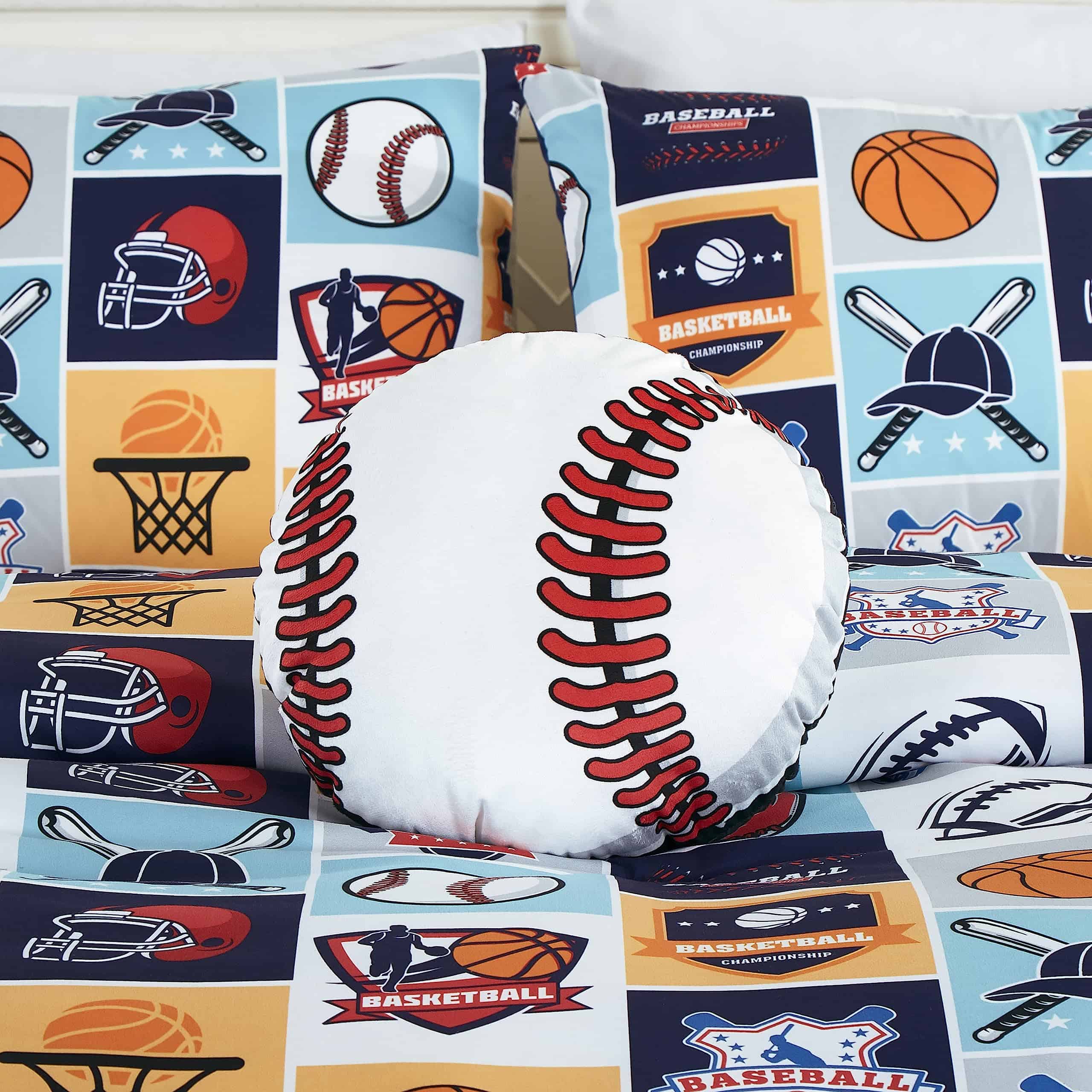 1. My Sports juego de ropa de cama de 3 piezas incluye: 1 edredón, 1 funda de almohada y 1 almohada de béisbol.