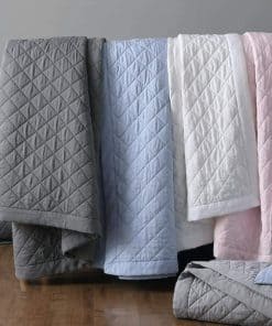 Chezmoi Collection Owen 3-Piece Soft Cooling Blend of Rayon Derived from Bamboo & Polyester Quilt Bedspread Diamond Quilted Coverlet Set (Queen, Light Gray) es un conjunto de colcha de 3 piezas que incluye un cubrecama y dos fundas de almohada. El tamaño para cama Queen es de 92″ x 96″ para el cubrecama y 20″ x 26″ para las fundas. Presenta un estilo clásico con un sorprendente patrón acolchado en forma de diamante, que lo hace excepcionalmente suave y fresco al tacto para brindarte una noche de sueño perfecta. Este conjunto está confeccionado con una mezcla de 65% de bambú derivado de rayon y 35% de poliéster, lo que lo hace super suave, transpirable, ligero y versátil. Es fácil de cuidar, ya que se puede lavar a máquina en ciclo suave con agua fría y secar a baja temperatura en secadora o al sol.