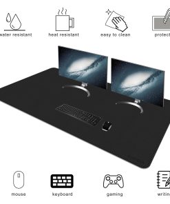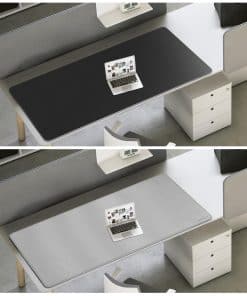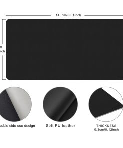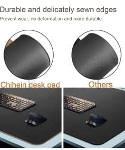 GRAN PROTECTOR PARA ESCRITORIO ¿Estás preocupado de que tu hermoso escritorio de vidrio o de madera se raye durante el uso del ratón, teclado, escritura u otras acciones? Esta almohadilla de escritorio perfecta protege y previene la humedad, arañazos, manchas, calor y rozaduras de la superficie de tu escritorio. USO DE DOBLE LADO Color diferente en cada lado, mismo material para todo el tapete. Diseño especial para usar en ambos lados. Tapete de escritorio 2 en 1, simplemente gíralo y podrás utilizarlo. BORDES COSIDOS DELICADOS El diseño de costura ajustada aporta firmeza y durabilidad, además de realzar la belleza de la alfombrilla de escritorio. USO EN VARIOS ESCENARIOS Su superficie suave te hará disfrutar de los juegos, la escritura, la escritura y la navegación. Es ideal para cualquier escritorio en casa u oficina. Le dará a tu habitación un ambiente moderno y profesional cuando lo coloques en tu escritorio. Se puede utilizar como protector de escritorio, almohadilla de escritura y almohadilla de ratón. Especificaciones: Marca: CHIHEIN Nombre del Producto: Alfombrilla de Escritorio de Doble Cara Dimensiones: 55.1×27.6×0.08 pulgadas (1400x700x2mm) Color: Gris/Blanco Material: Cuero PU Contenido de la Caja: 1x Alfombrilla de Escritorio, 1 x Correa del Mismo Color, 1 x Bolsa de Tela