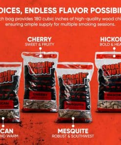 Chips de Madera de Roble Post Especialmente Diseñados y Clasificados a Mano para Funcionar con El Sistema son la opción perfecta para aquellos que desean mejorar su experiencia en BBQ con un sabor ahumado auténtico y profundo en sus carnes. Con una bolsa grande que cubre 180 pulgadas cúbicas, estos chips de madera de roble post son versátiles y están diseñados para su uso en ahumadores, parrillas de carbón, ahumadores eléctricos y parrillas de gas. Los chips de madera de roble post garantizan un largo y lento humo, lo que proporciona un sabor ahumado sostenido durante todo el proceso de cocción. Fabricados con maderas americanas de alta calidad, estos chips se mezclan perfectamente con otros tipos de chips para brindar un sabor equilibrado y sabroso. Disfruta de la calidad y el sabor auténtico de los chips de madera de roble post para llevar tu BBQ al siguiente nivel.