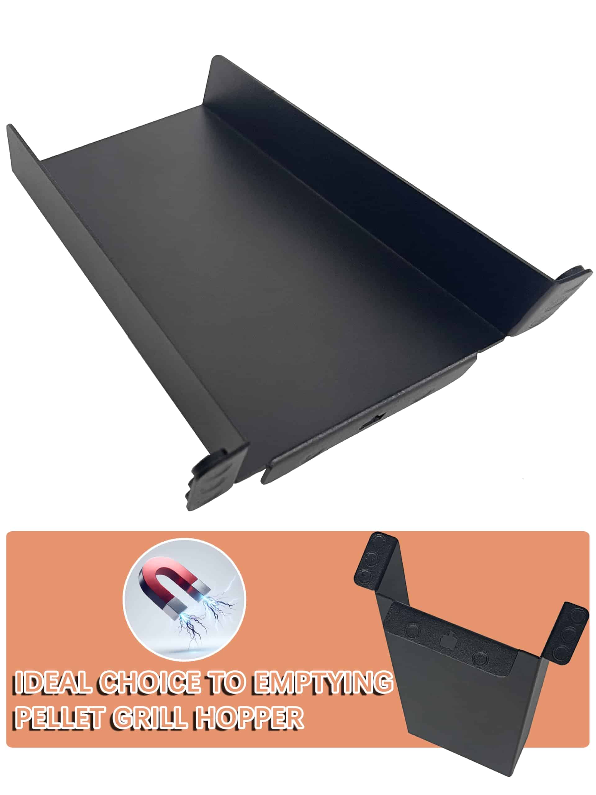 3. INSTALACIÓN SENCILLA: Los accesorios para ahumadores no requieren modificación o ensamblaje, con 8 imanes integrados resistentes al calor, se ajusta sin esfuerzo, simplificando el proceso de configuración para transferir pellets al contenedor de almacenamiento.