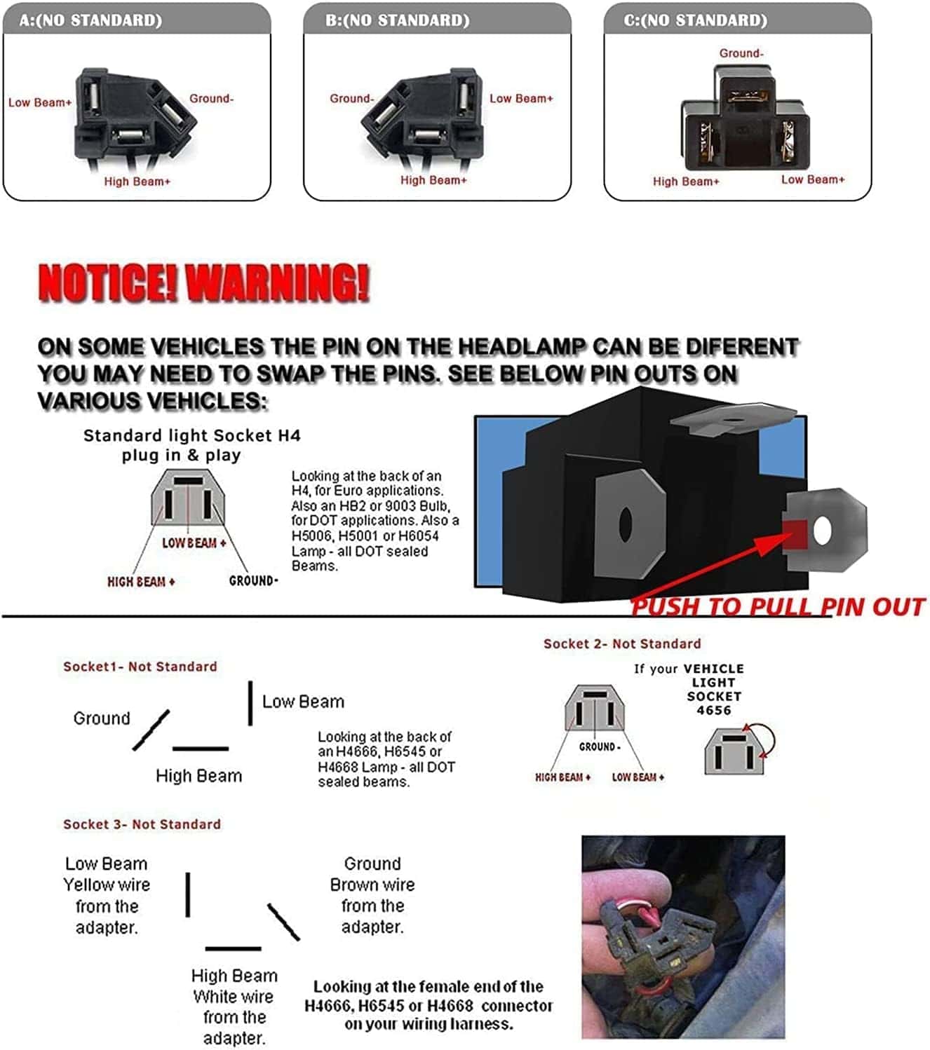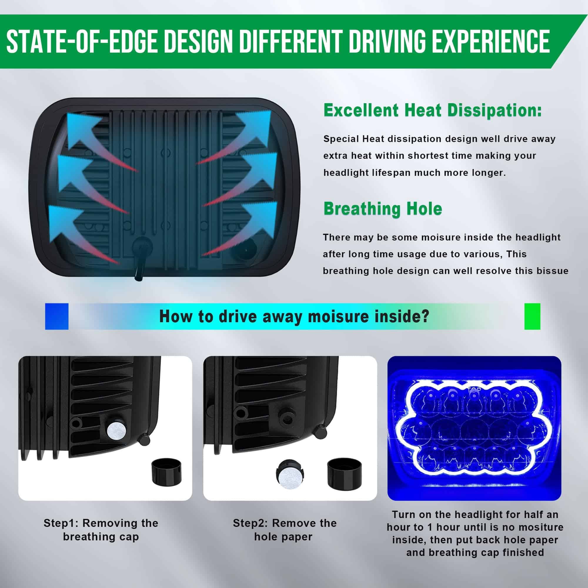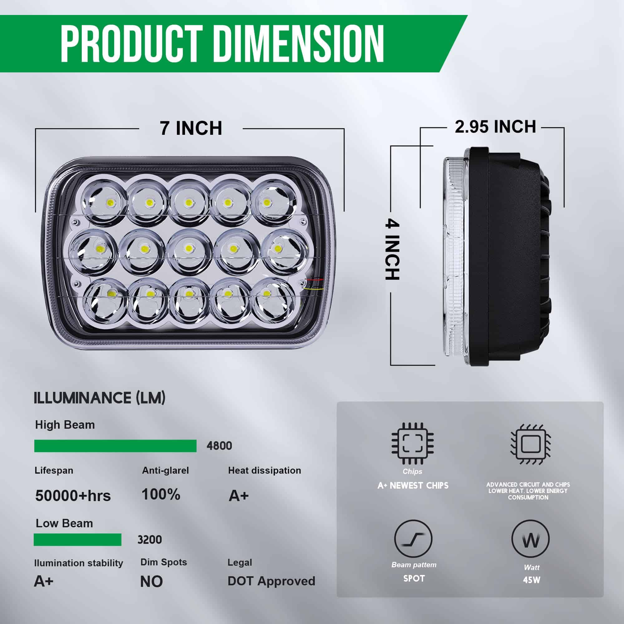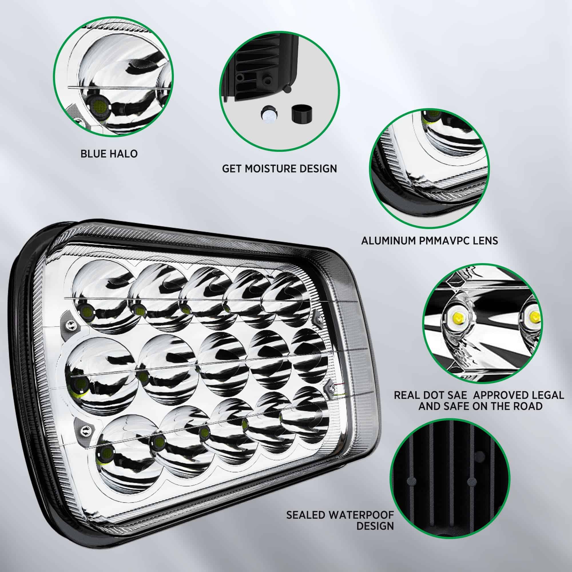 Los faros LED H6054 7×6 pulgadas están diseñados para actualizar cualquier faro de camioneta sellado a luces LED, proporcionando más luz, luz más blanca y garantizando que no tengas que lidiar con faros quemados para asegurar la seguridad del conductor. Estos faros 5×7 proporcionan tecnología de iluminación de baja viga, alta viga y luces azules de conducción diurna para hacer tu proceso de conducción más seguro. Por favor, confirma que esta parte es adecuada para tu vehículo antes de la compra. Toyota y otros vehículos pueden necesitar mover los pines en el enchufe del faro a diferentes posiciones. El adaptador en el paquete H4 a 3 pines puede resolver este problema de manera efectiva (no incluido). Adecuado para YJ Wrangler de 1986-1995, XJ Cherokee de 1984-2001, Comanche MJ de 1986-1992, camiones Kenworth, furgonetas, camiones de bomberos, camiones semirremolque todoterreno, vehículos de construcción Isuzu: excavadoras, bulldozers, rodillos de carretera, grúas y camiones mineros, etc. Los faros 7×6 E250/H6054 liderados por Toyota emiten una luz blanca brillante y son claramente visibles. Las copas de lámpara de alta viga especialmente diseñadas con 9 PSC proporcionan un rango más amplio de iluminación, permitiéndote ver claramente los lados izquierdo y derecho. Los faros H6054 LED tienen una clasificación impermeable IP68, que aún funciona y es muy brillante después de estar en agua durante 2 horas, y es efectivo a prueba de polvo. Soporte de montaje de acero inoxidable para protección contra óxido y corrosión. La rápida refrigeración de las aletas de aleación de aluminio y el gel de sílice térmica de alta calidad pueden extender efectivamente la vida útil del cableado por más de 30,000 horas. ¡Por favor, verifica el tamaño de las imágenes de los productos, tipo y forma para asegurarte de que el artículo sea el que necesitas! Si tienes algún problema, ¡tómate el tiempo para contactarnos, estamos en servicio las 24 horas!