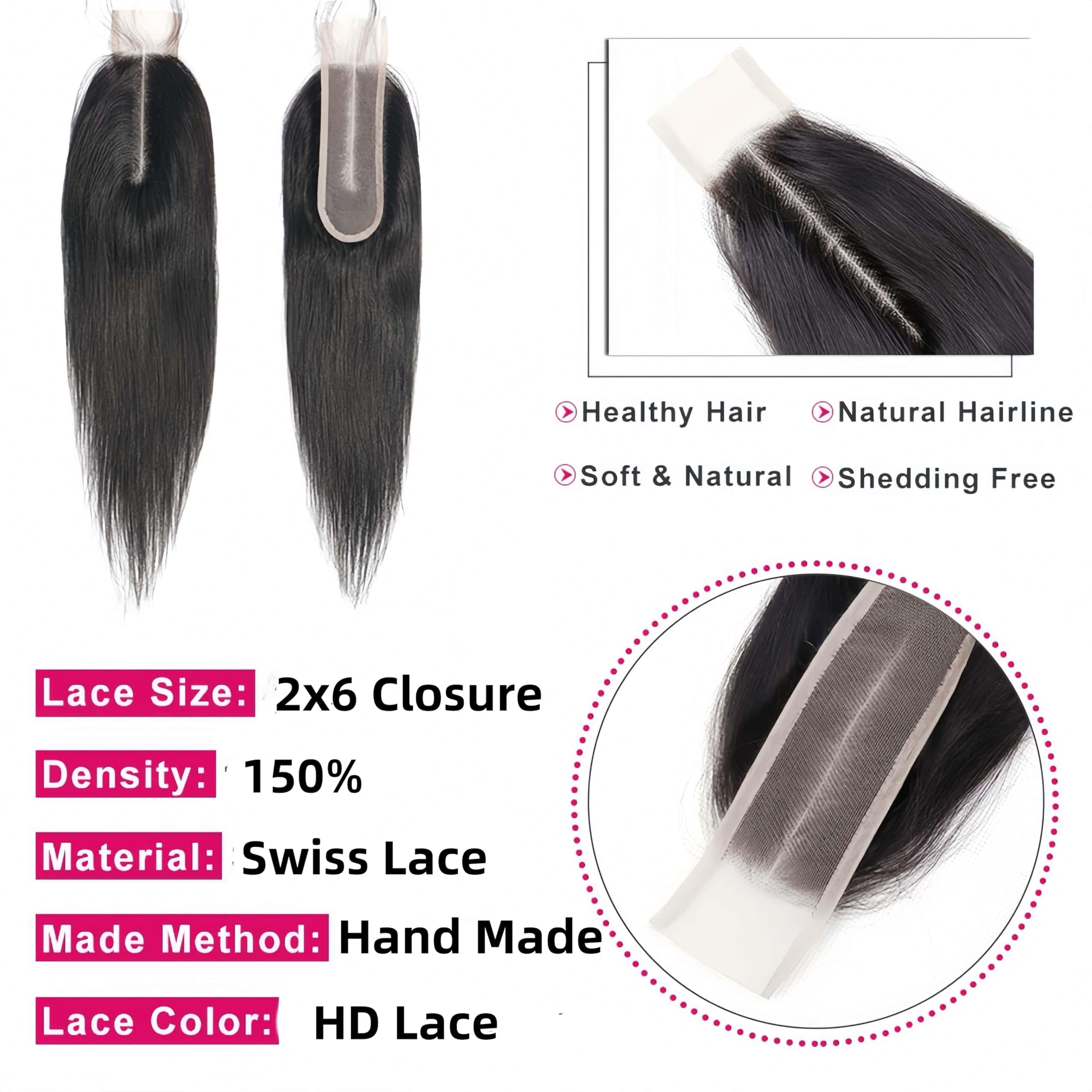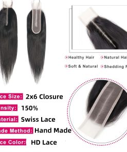 1. Cierre de Encaje 2×6 HD: Pelo Suavidad y Limpiar al Usar, apariencia, suavidad, rendimiento, y valor del cierre de encaje, fácil coser a una peluca con mechones.