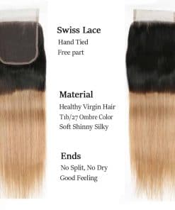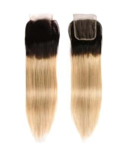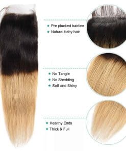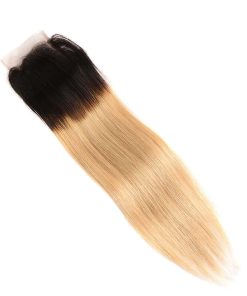 Cierre de encaje 4×4 de ombre brasileño 1B 27 100% cabello