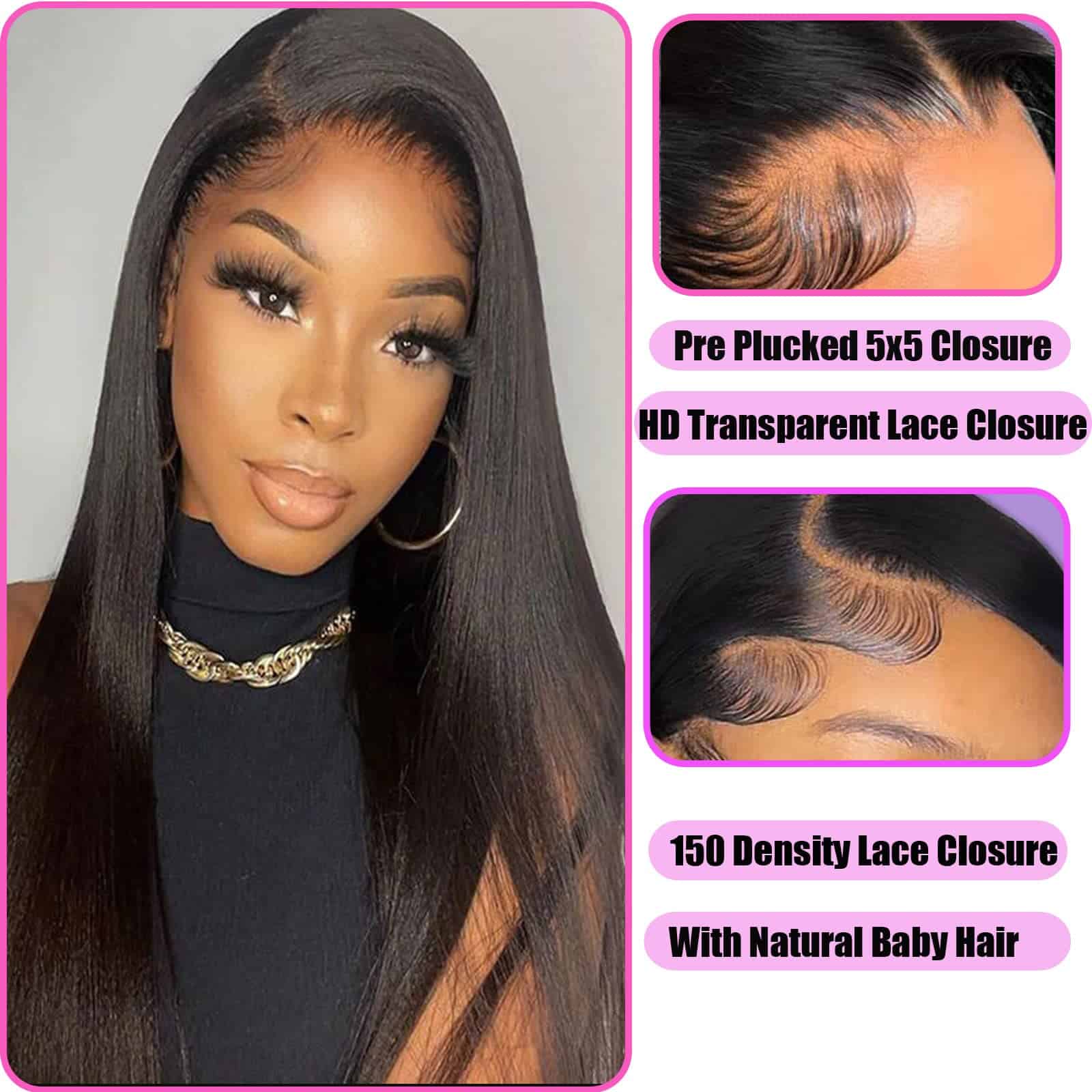 1. 1 Cierre de Encaje HD 5×5 Material Premium: Cabello Humano Virgen Brasileño, Grado 12A, Proveniente de Donantes Jóvenes. Suave y Saludable, Se Puede Teñir, Decolorar, Alisar. Textura Saludable, Sin Caída ni Enredos. 2. Ventajas del Cierre Recto 5×5 de Encaje: Densidad del 150%, Completo y Grueso, Verdadera Longitud (cómo medir el cierre recto, por favor estírelo para medir) Cierre de Encaje HD 5×5 sin Pegamento, prearrancado con pelo de bebé, aspecto realista y natural, Amigable para Principiantes, Fácil de Instalar, Más Saludable, Ahorra Tiempo, Área de Encaje Transparente de 5×5 Pulgadas, Espacio Profundo de Separación en el Frente, se Puede Hacer Parte en Medio o al Costado, Múltiples Opciones. Se Puede Teñir del Color que Desees. 3. Características del Cierre Recto 5×5 de Encaje Transparente HD: Cierre de Encaje HD 5×5, Área de Encaje 5×5». Transpirable, Cómodo, Suave, Invisible. Un Mantenimiento Cuidadoso Hace que el Ciclo Sea Más Largo. Nudos Transparentes Invisibles, se Adaptan Bien a tu Piel. 4. Calidad del Cierre 5×5 de Encaje: Densidad del 150%, prearrancado con Pelo de Bebé, Aspecto Natural del Cierre de 5×5 Profundo, Encaje HD Transpirable se Puede Decolorar para Combinar con tu Tono de Piel, Encaje Suizo Súper Suave, Nudos Decolorados que se Adaptan a tu Tono de Piel. 5. Excelente Servicio al Cliente: Servicio al Cliente en Línea las 24 Horas. Si Tienes Alguna Pregunta, no dudes en Contactarnos, Haremos Todo lo Posible para Ayudarte a Resolverlo y tu Satisfacción es Nuestra Búsqueda Eterna!