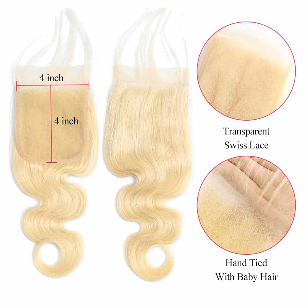Cierre de Encaje Body Wave Rubia 613 4×4 Invisible