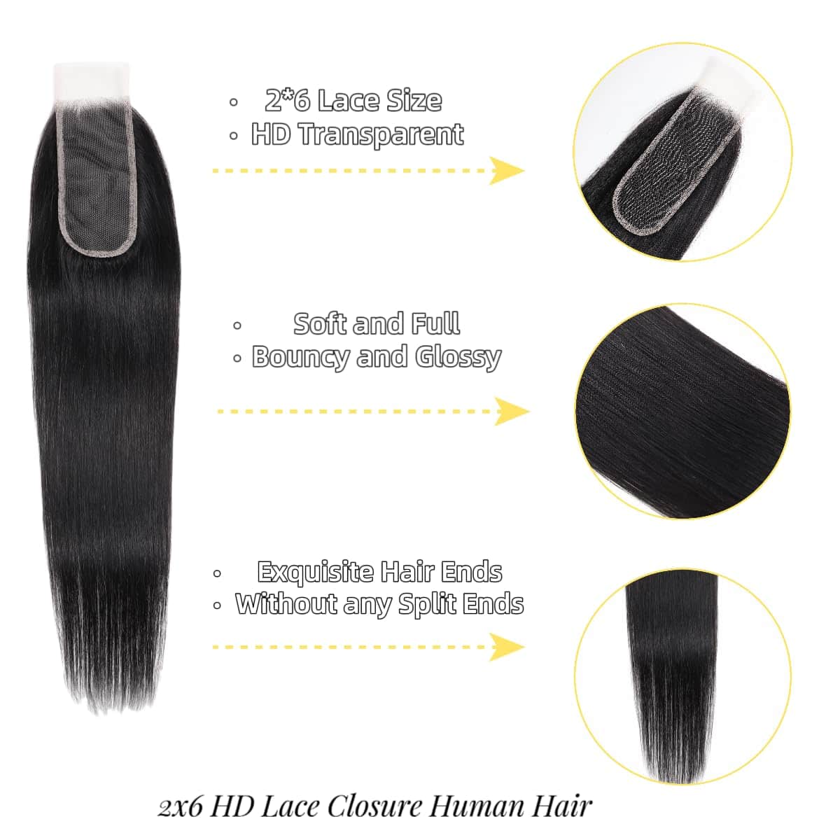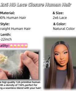 Cierre de Encaje HD 2×6 Recto de Cabello Humano 20 Pulgadas