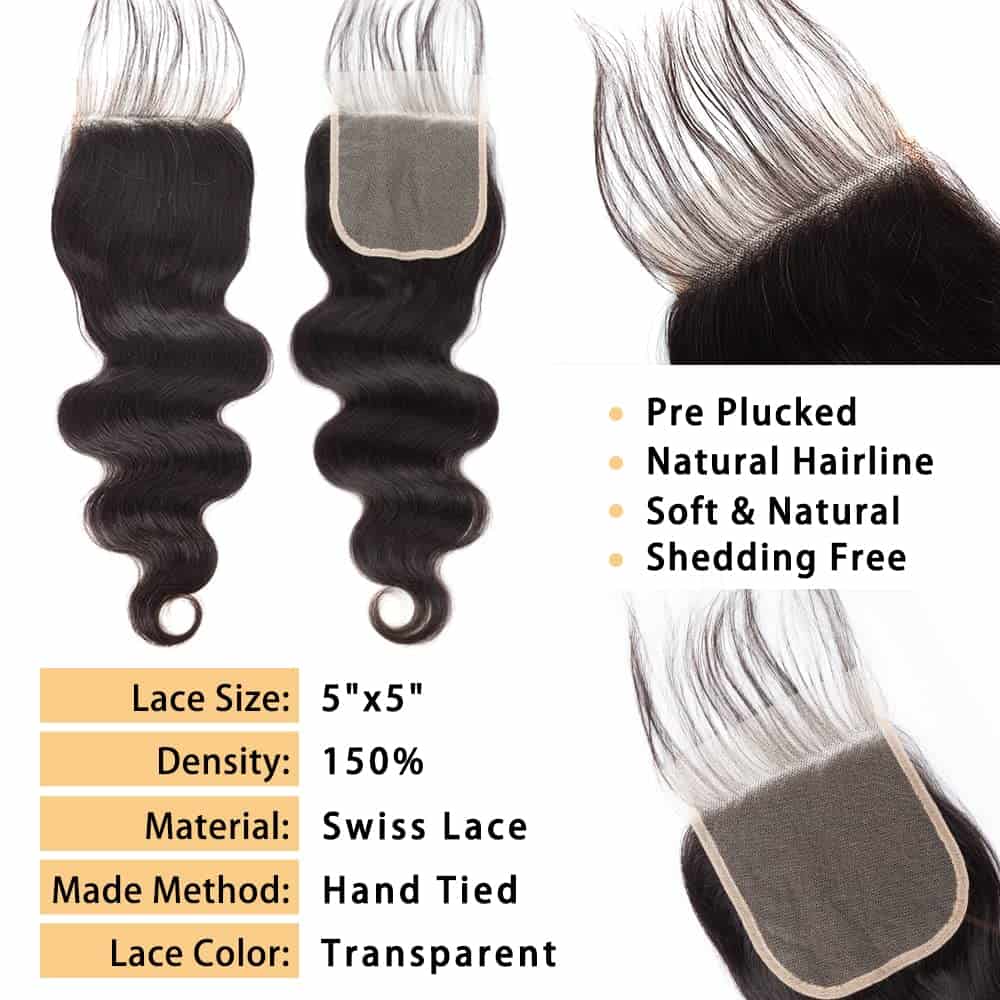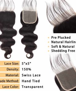 Cierre de Encaje HD Onda del Cuerpo 5×5 Parte Libre 100%