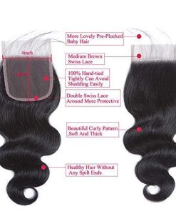 Cierre de Encaje Onda del Cuerpo Pelo Humano Brasileño Onda