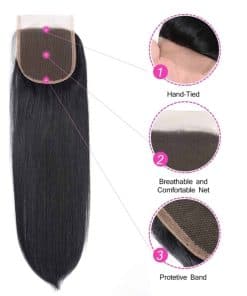 Cierre de Encaje Recto Brasileño de Cabello Humano 100% Sin
