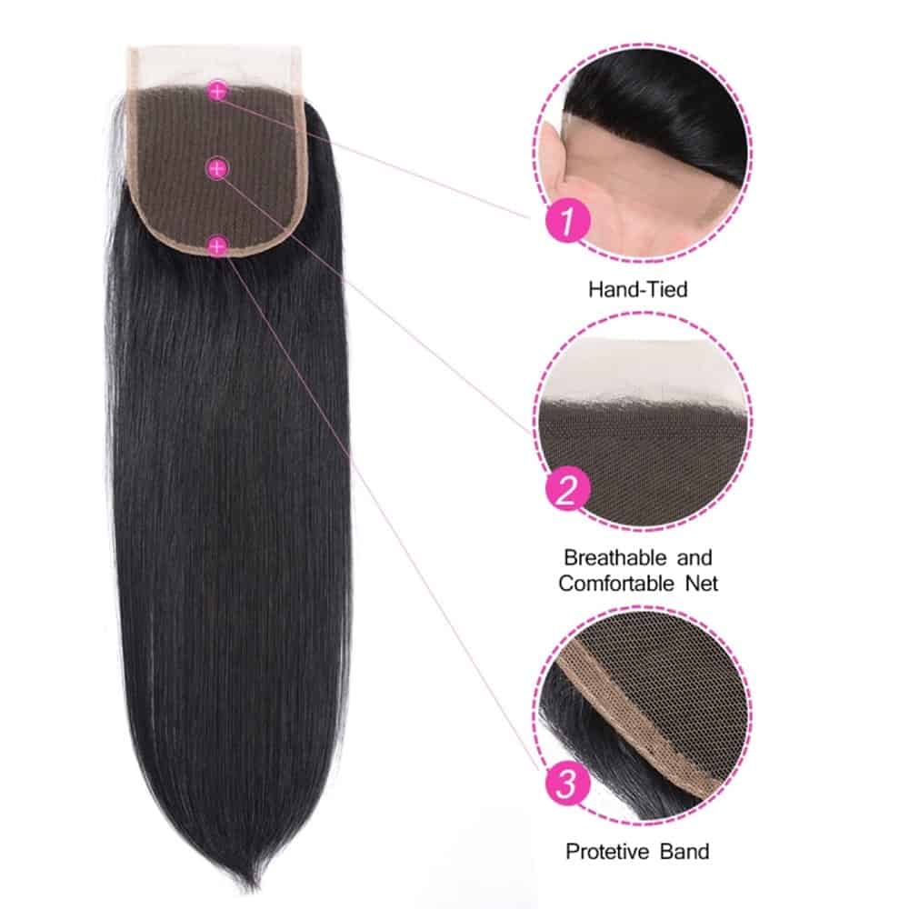Cierre de encaje brasileño recto de cabello humano 100% sin procesar
