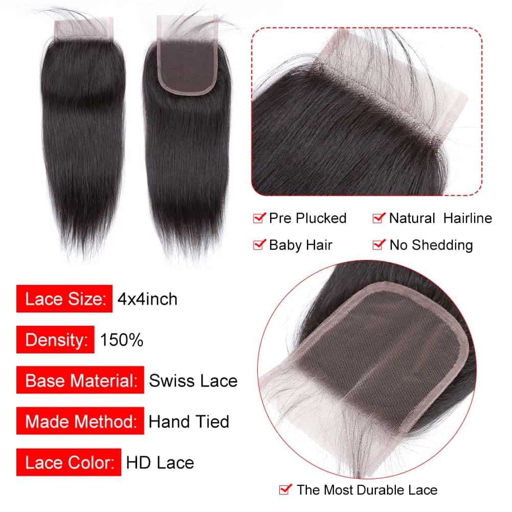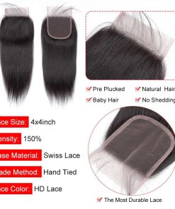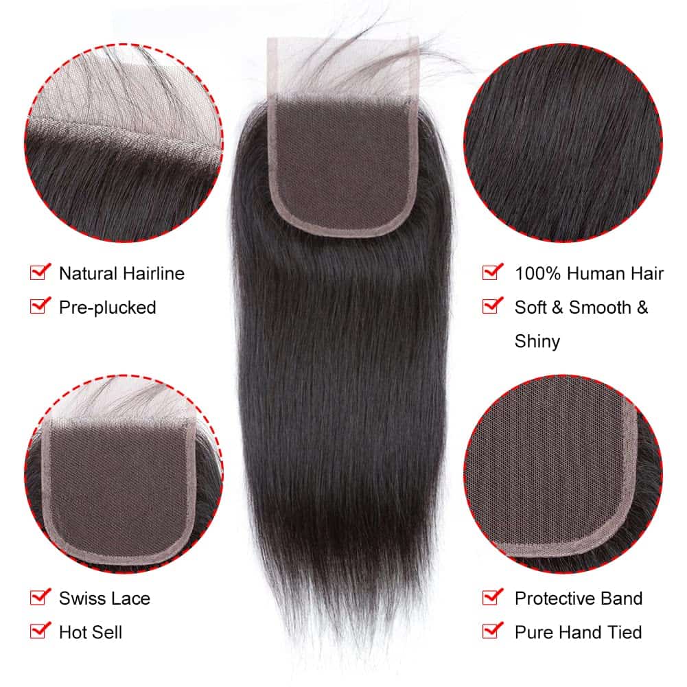Cierre de Encaje Recto de Cabello Humano 4×4 100% Virgen
