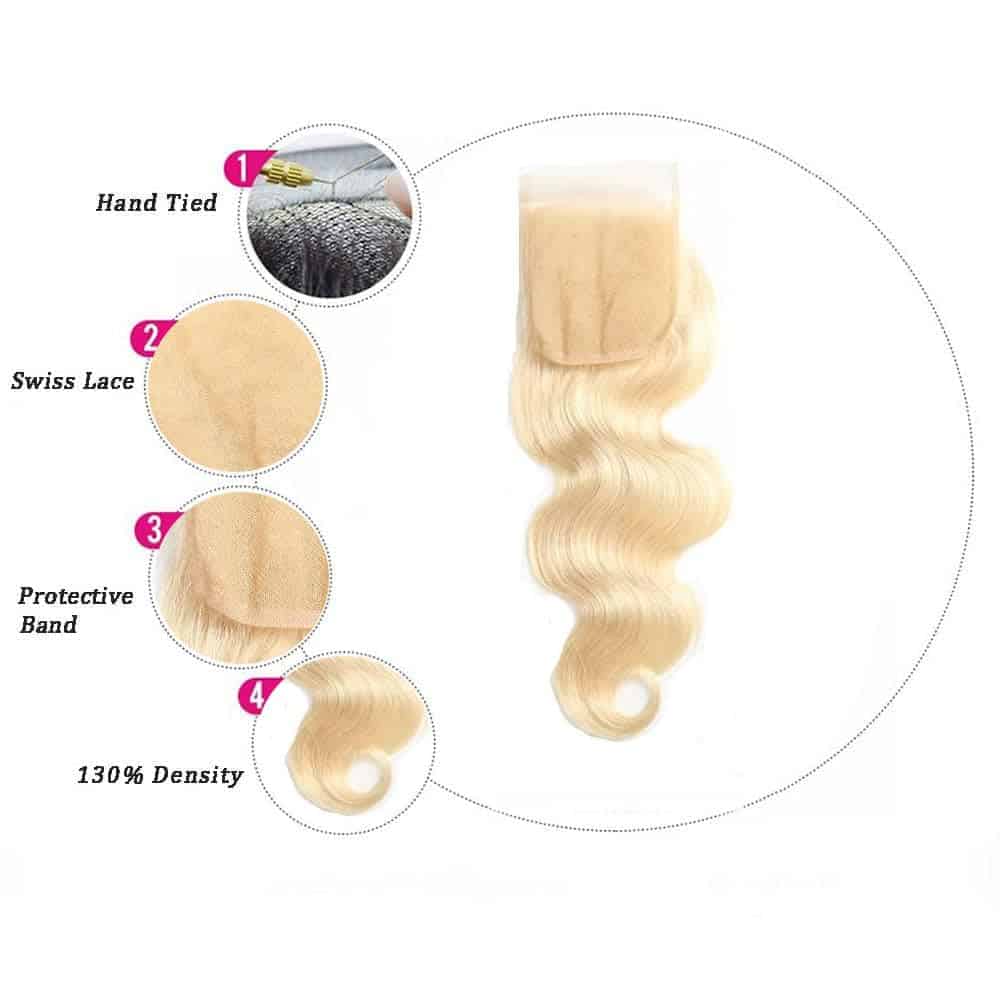 Cierre de Encaje Rubia 613 4X4 HDTransparente Cierre