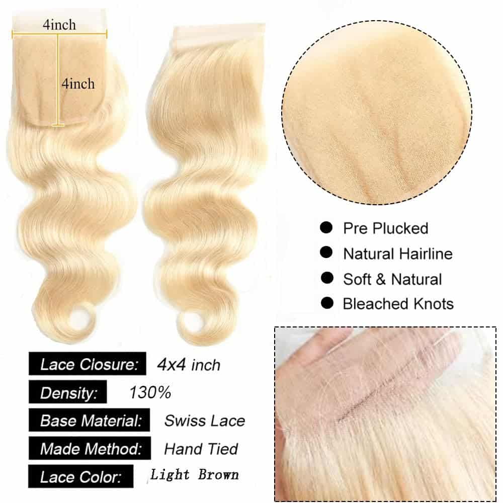 1. Cierre de Encaje Rubia 613: Densidad Completa del 150%, Peso: De 35 g a 50 g Dependiendo de la Longitud, Cierre Frontal de Encaje Suizo 4×4 Libre, Encaje Transparente HD. 2. Calidad del Cierre de Encaje Onda Cuerpo: Cierre de Encaje de Cabello Humano Hecho a Mano; Textura Sedosa y Suave que Mantiene el Rizo Después del Lavado. Sin Caídas, Sin Enredos, Puede Ser Alisado, Rizado, Decolorado y Estilizado. 3. Material Real: Cabello Virgen sin Procesar 10A de Grado Cortado de un Donante Joven Directamente; Encaje HD Transparente de Primera Selección: Duradero, Evita Caídas o Calvas. 4. Ventajas del Cierre de Encaje: Línea de Cabello Natural Pre Arrancado con Cabello de Bebé; El Cierre de Encaje 4×4 Puede Darle una Apariencia Más Natural con Encaje Transparente de Color HD, Mucho Más Asequible que el Frontal de Encaje de Oreja a Oreja pero Aún Así Lucir Encantador y Elegante Natural; Todos los Cierres son Verdaderos en Longitud, Completos en Peso, Sensación Suave, Saludable, Suave. 5. Cierre de Encaje Suizo Espacio de Separación de 4×4 Pulgadas Atado a Mano en la Parte Frontal Encaje Suizo Marrón Claro, Muy Suave para la Piel y Muy Resistente que no se Puede Destruir.
