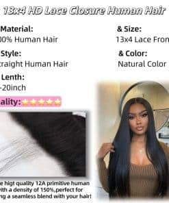 Cierre Frontal de Encaje 13×4 Recto Cabello Humano