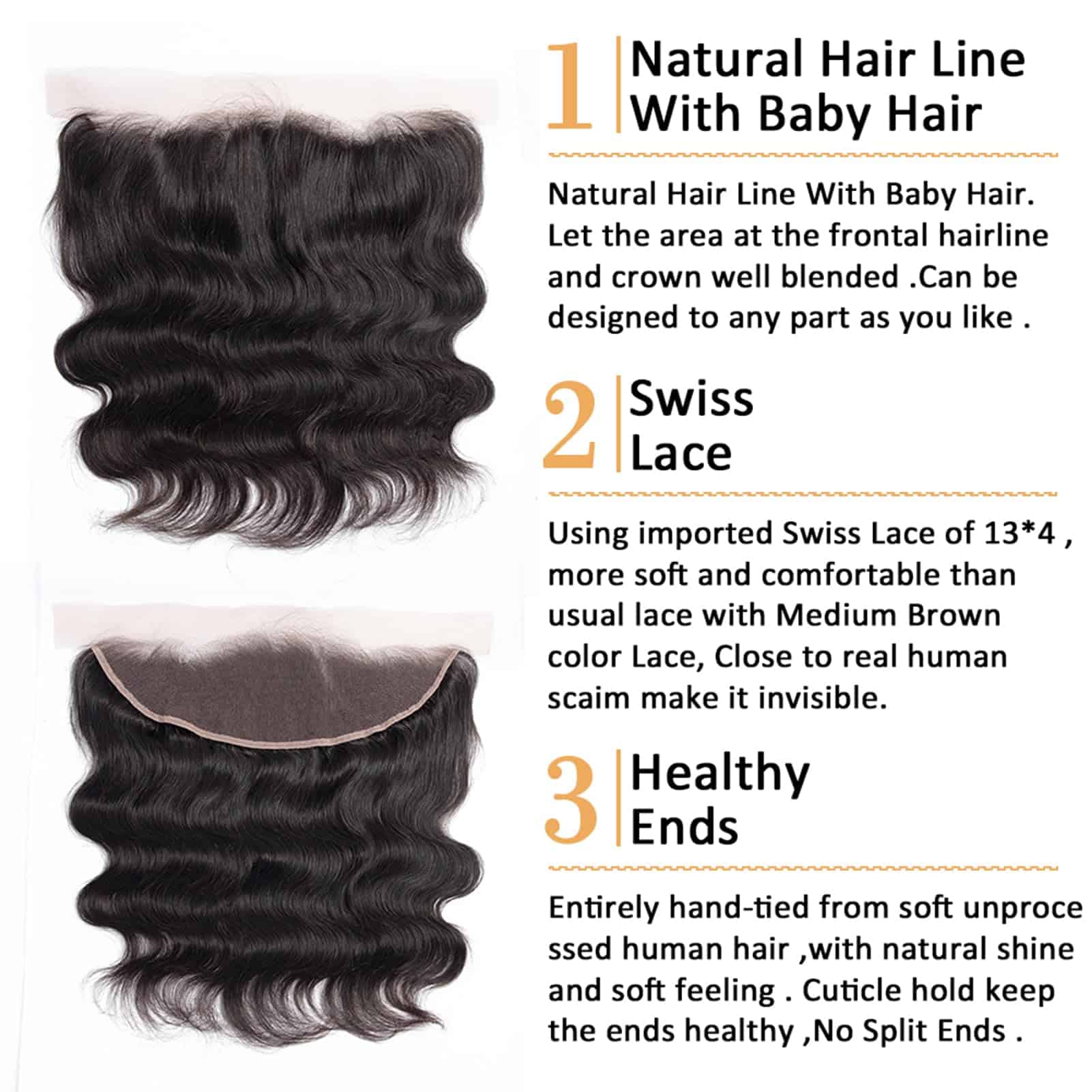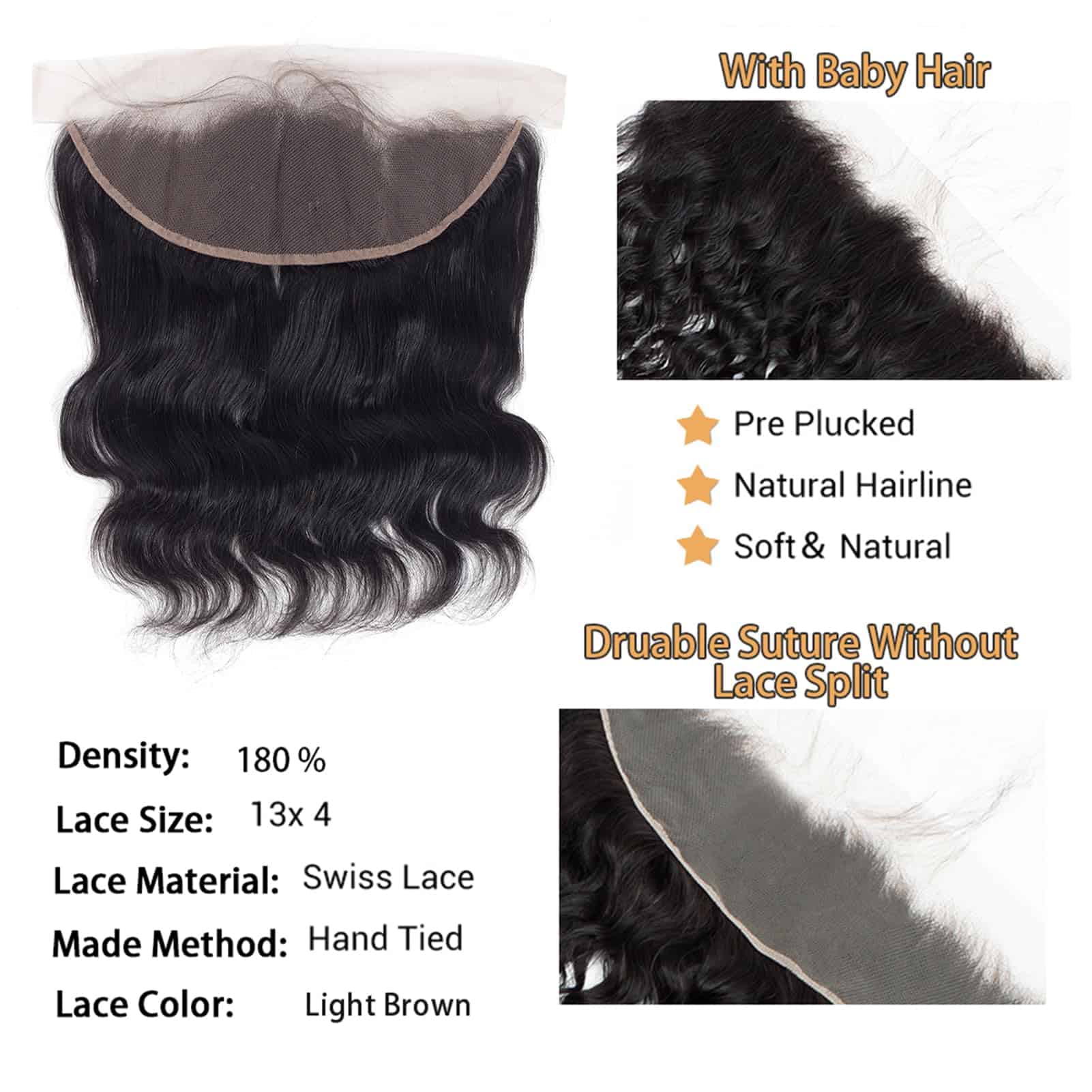 Cierre Frontal de Encaje Body Wave 13×4 Oreja a Oreja 100%