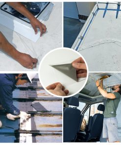 3. Compatibilidad versátil: Esta cinta selladora es compatible con una amplia gama de superficies incluyendo plástico, metal, aluminio, goma, madera, vinilo, vidrio, acero y acrílico. Es tu solución todo en uno para RVs, techos de RV, campers, toldos, tiendas de campaña, invernaderos, canalones, metales, autocaravanas, lonas y más.